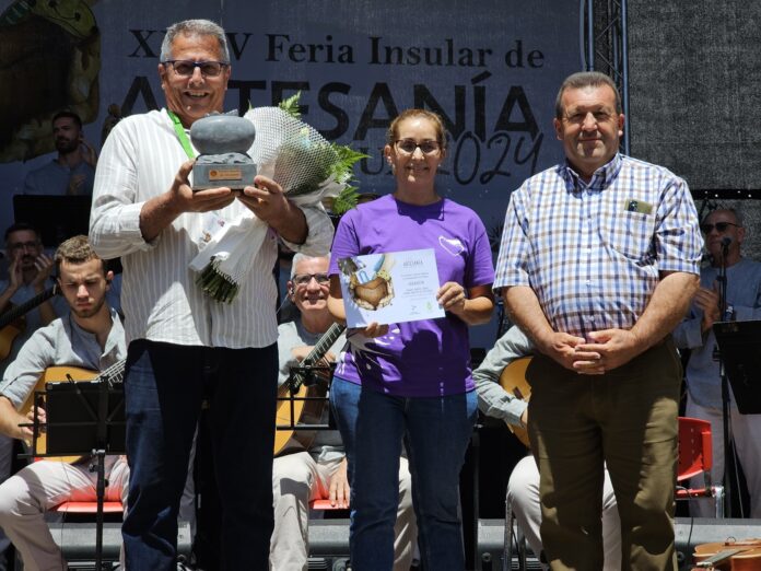 Como es tradición en cada edición, este último día de Feria, el alcalde, Matías Peña y la presidenta de la Fundación Colectivo Mafasca, Nereida Brito han hecho entrega del Premio Insular de Artesanía 2024 al artesano y carpintero de oficio D. Manuel Benítez Ramos, quien en su intervención ha mostrado su agradecimiento a la Organización por el esfuerzo realizado siempre con buenos resultados para los artesanos.