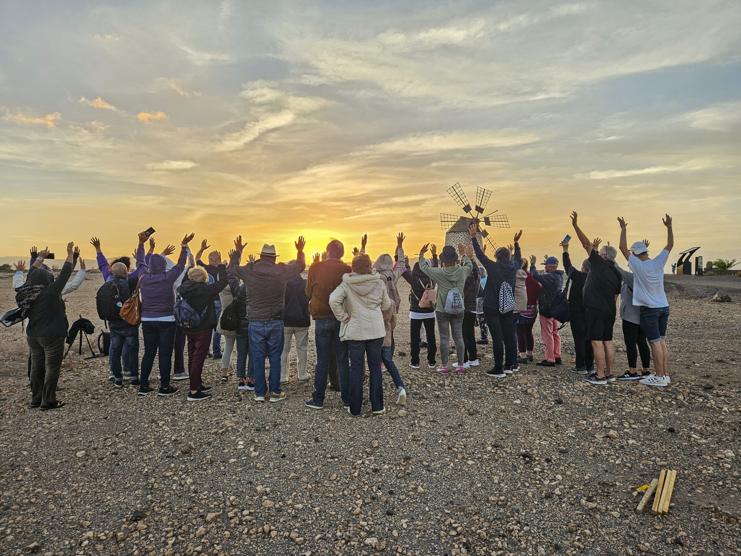 En esta primera jornada de actividad, las personas mayores contemplaron la puesta de sol, en la que les explicaron los solsticios y equinoccios en Fuerteventura y cómo los antepasados los utilizaban para conocer cuándo llovía para plantar y recoger las cosechas.Posteriormente, asistieron a una exposición de fotografías de la Vía Láctea, donde se les expuso el proceso de creación y extinción de las estrellas en el Universo. Por último, contemplaron la noche sin contaminación lumínica y pudieron vislumbrar el espectáculo de constelaciones y planetas que se apreciaban en los alrededores del Albergue de Tefía.