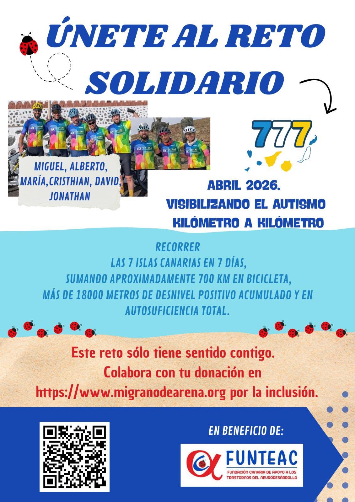 El Reto Solidario 777, en beneficio de FUNTEAC recorrerá las islas Canarias para visibilizar el autismo y apoyar la inclusión.