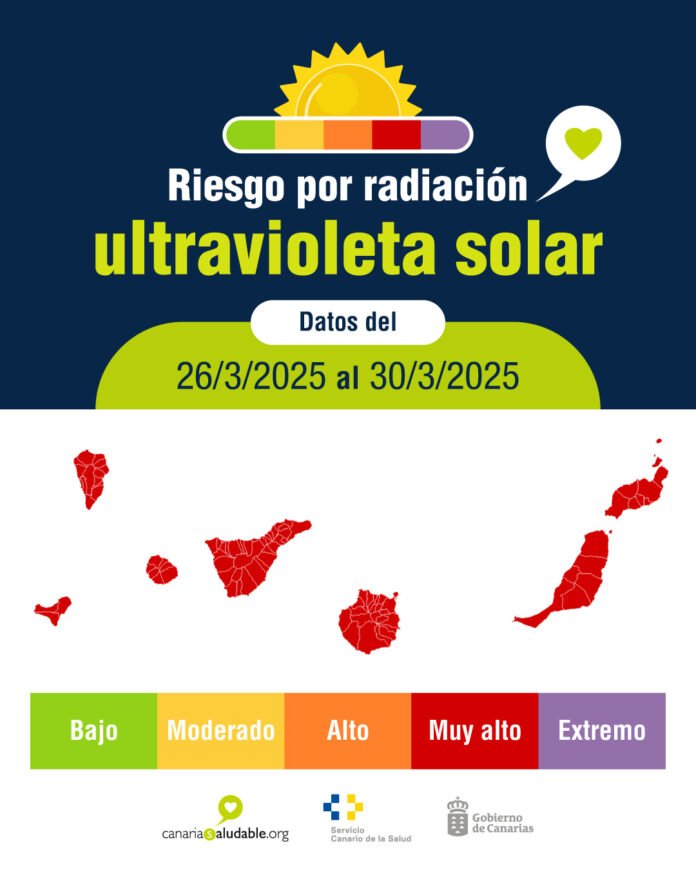 De acuerdo con este Plan, la Dirección General de Salud Pública informa que según los datos suministrados por la Agencia Estatal de Meteorología (AEMET), y los indicadores establecidos por este Plan, actualmente el riesgo por radiación ultravioleta en Canarias es muy alto en estos días en todas las islas , algo inusual para esta época del año. Este nivel de riesgo muy alto estará activo, al menos, hasta el 30 de marzo. Por ello, recuerda que protegerse del sol es una responsabilidad que se debe mantener no solo en verano, sino durante todo el año, incluso en los días nublados.