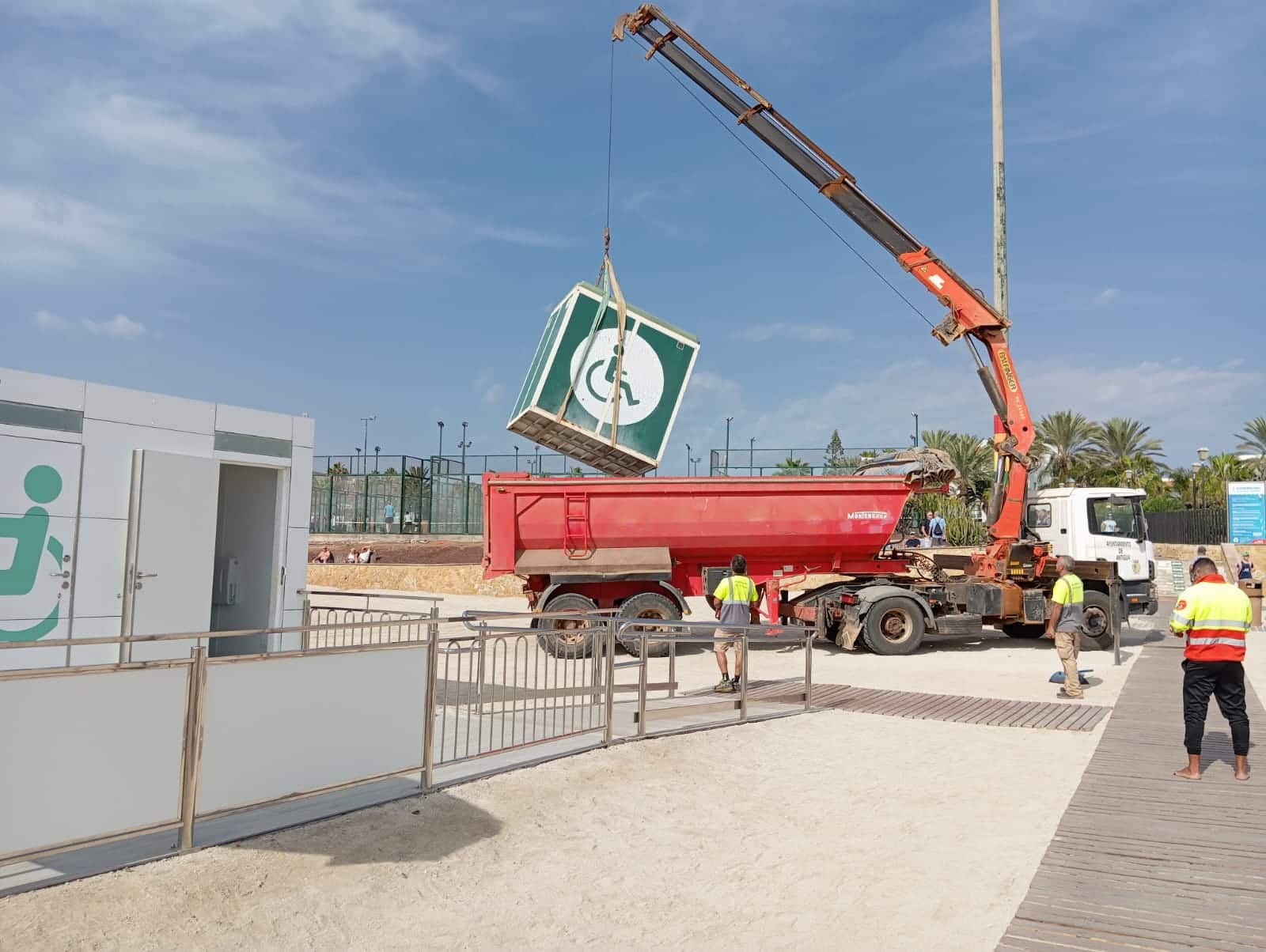 El Ayuntamiento de Antigua ha procedido a la retirada de los viejos baños, en una actuación coordinada por la concejalía de Playas que dirige Lucila G. Ruiz Gutiérrez.