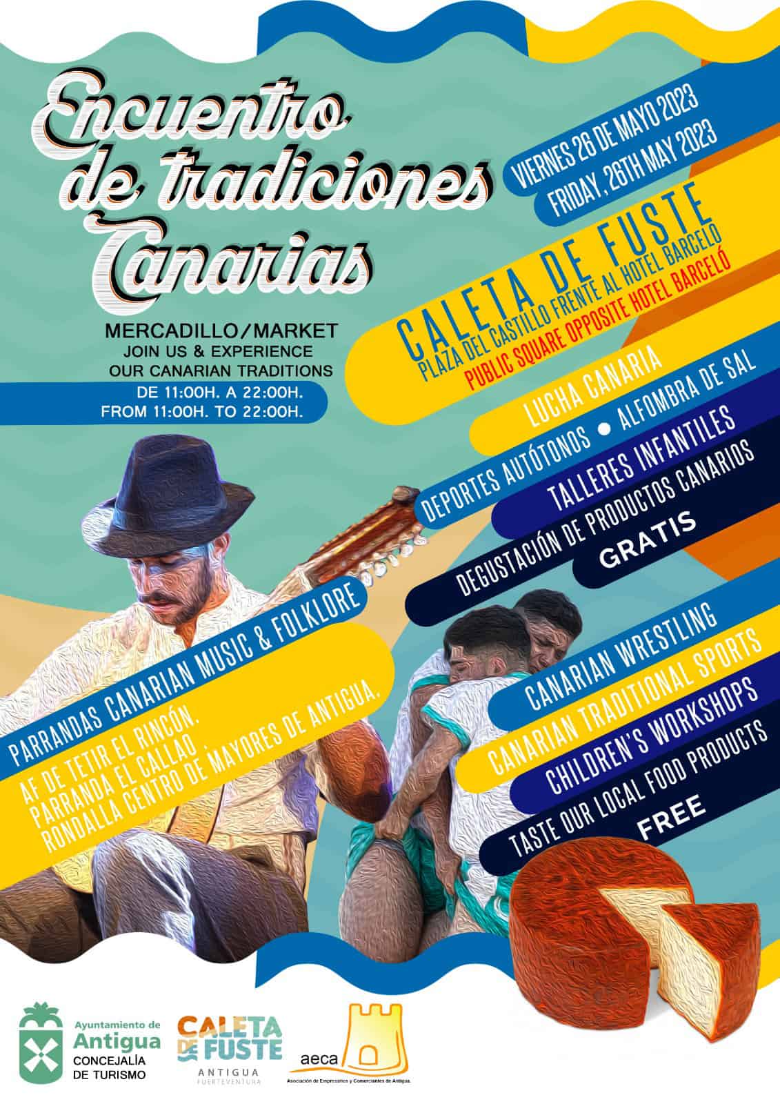 El Ayuntamiento de Antigua desde la concejalía de Turismo organiza este viernes en Caleta de Fuste un Encuentro de Tradiciones Canarias en la plaza del Castillo desde las 11:00 horas de la mañana a las 22:00 horas de la noche.