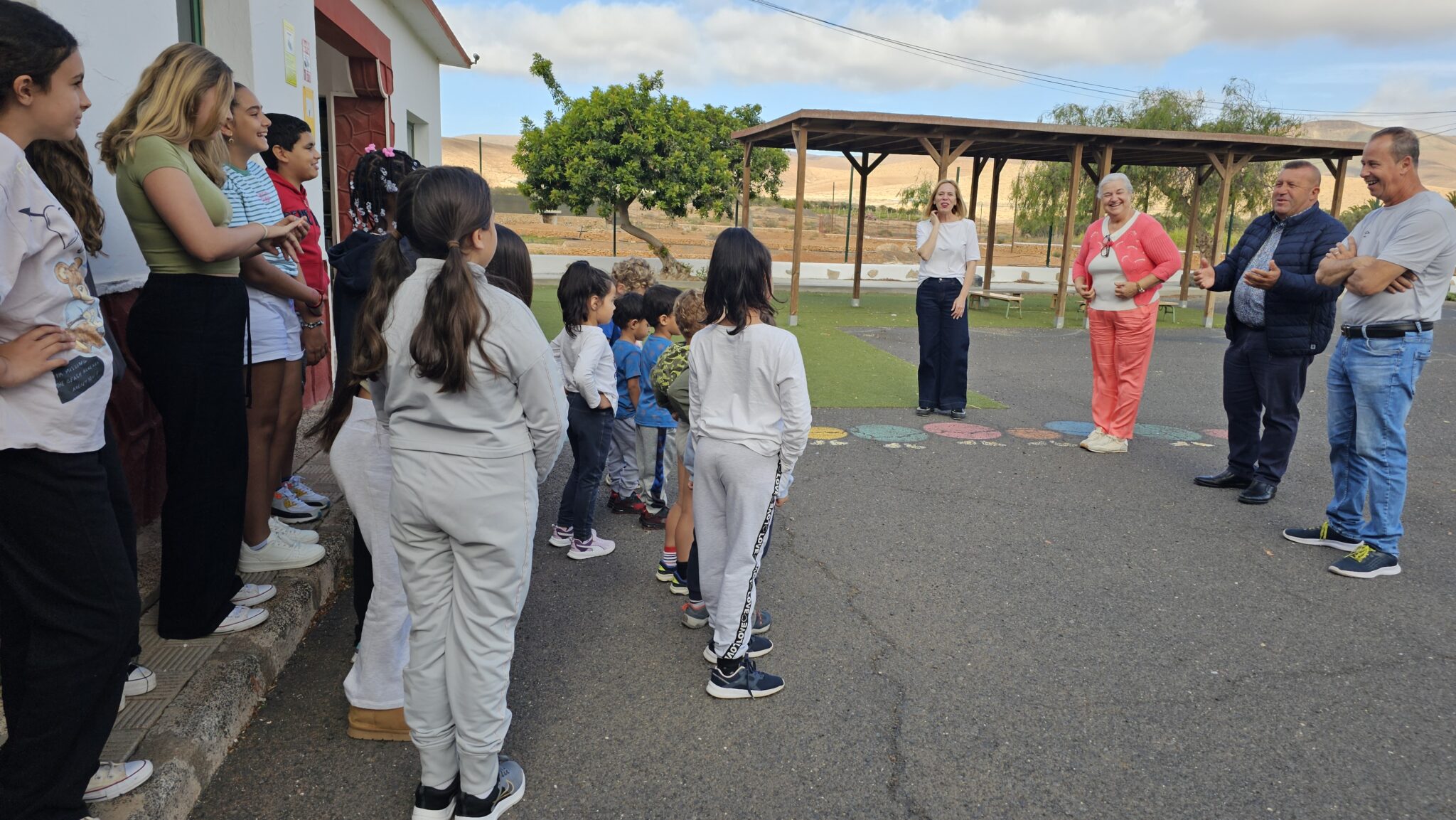 El alcalde de Antigua, Matías Peña García y la concejala de Educación, América Soto Betancor han visitado la Escuela Unitaria de Valles de Ortega para felicitar al cartel de actores y actrices entre los 6 y 12 años que han protagonizado el cortometraje El hada del cole.