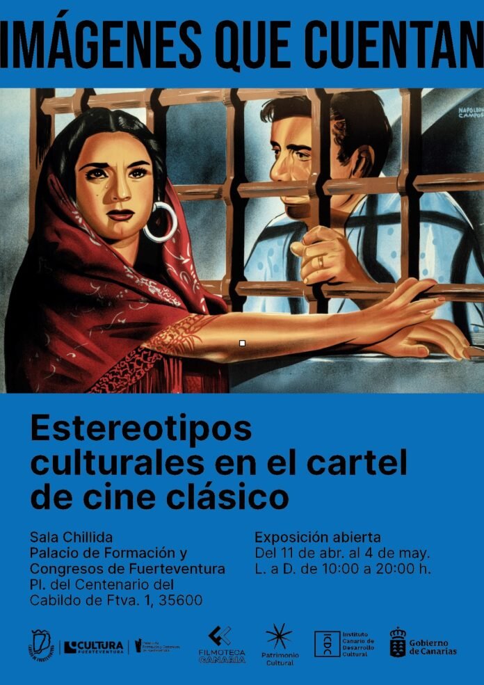 Con la exposición “Imágenes que cuentan. Estereotipos culturales en el cartel de cine clásico”, el Gobierno de Canarias, en coordinación con la Consejería de Cultura del Cabildo de Fuerteventura, invita al público a descubrir la evolución histórica del cine y su impacto en la sociedad a través de una selección de cuarenta carteles del siglo XX pertenecientes a los fondos de Filmoteca Canaria. Desde este viernes, 11 de abril, hasta el 4 de mayo en la Sala Chillida del Palacio de Formación y Congresos de Fuerteventura (Puerto del Rosario) se podrá disfrutar de esta muestra comisariada por la investigadora Goretti García.