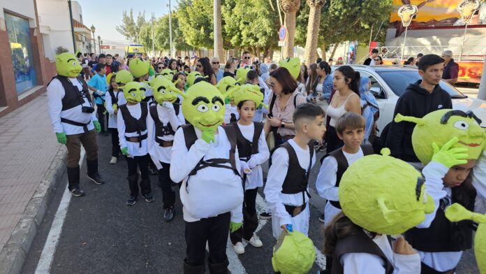 Este viernes por la mañana lo escolares de la Escuela Unitaria de Valles de Ortega, el CEIP Francisca Pérez en Triquivijate y el CEO de Antigua ha protagonizado un desfile carnavalero conjunto por las calles de Antigua, donde no han faltado Shreks, toys, vaqueros, brujas, duendes, lobos feroces, caperucitas, dulces galletas, lazos amorosos y la batucada del CEO de Antigua.