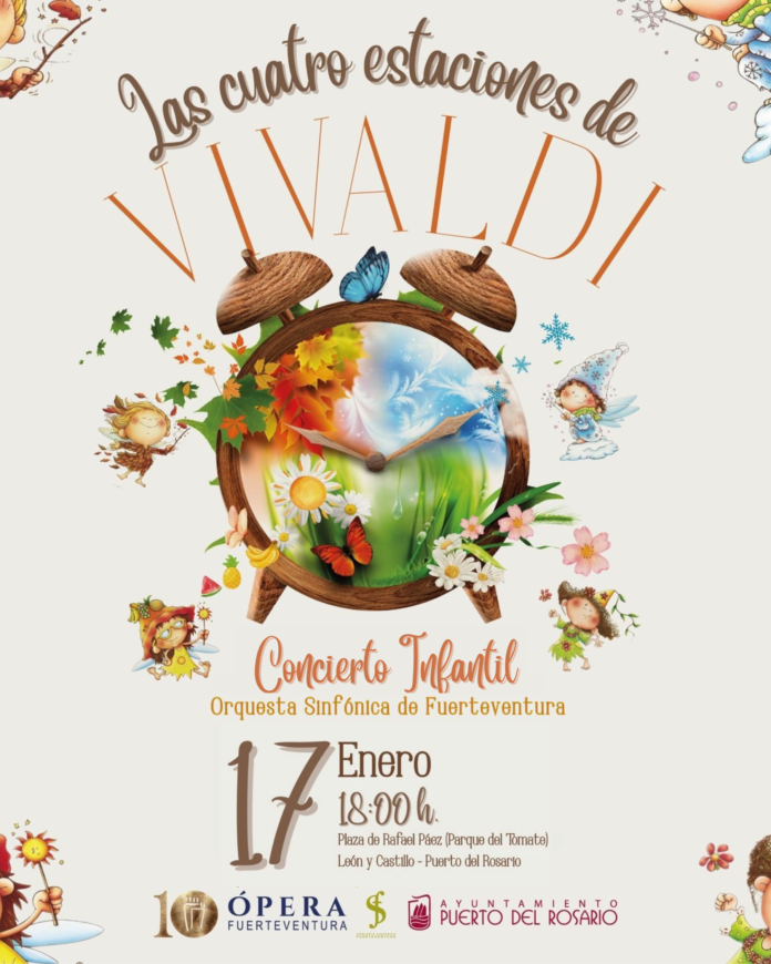 La Plaza de Rafael Páez, también conocida como Parque del Tomate, en la calle León y Castillo de Puerto del Rosario, será el escenario del concierto infantil “Las Cuatro Estaciones de Vivaldi”, que se celebrará el próximo miércoles 17 de enero a las 18:00 horas.