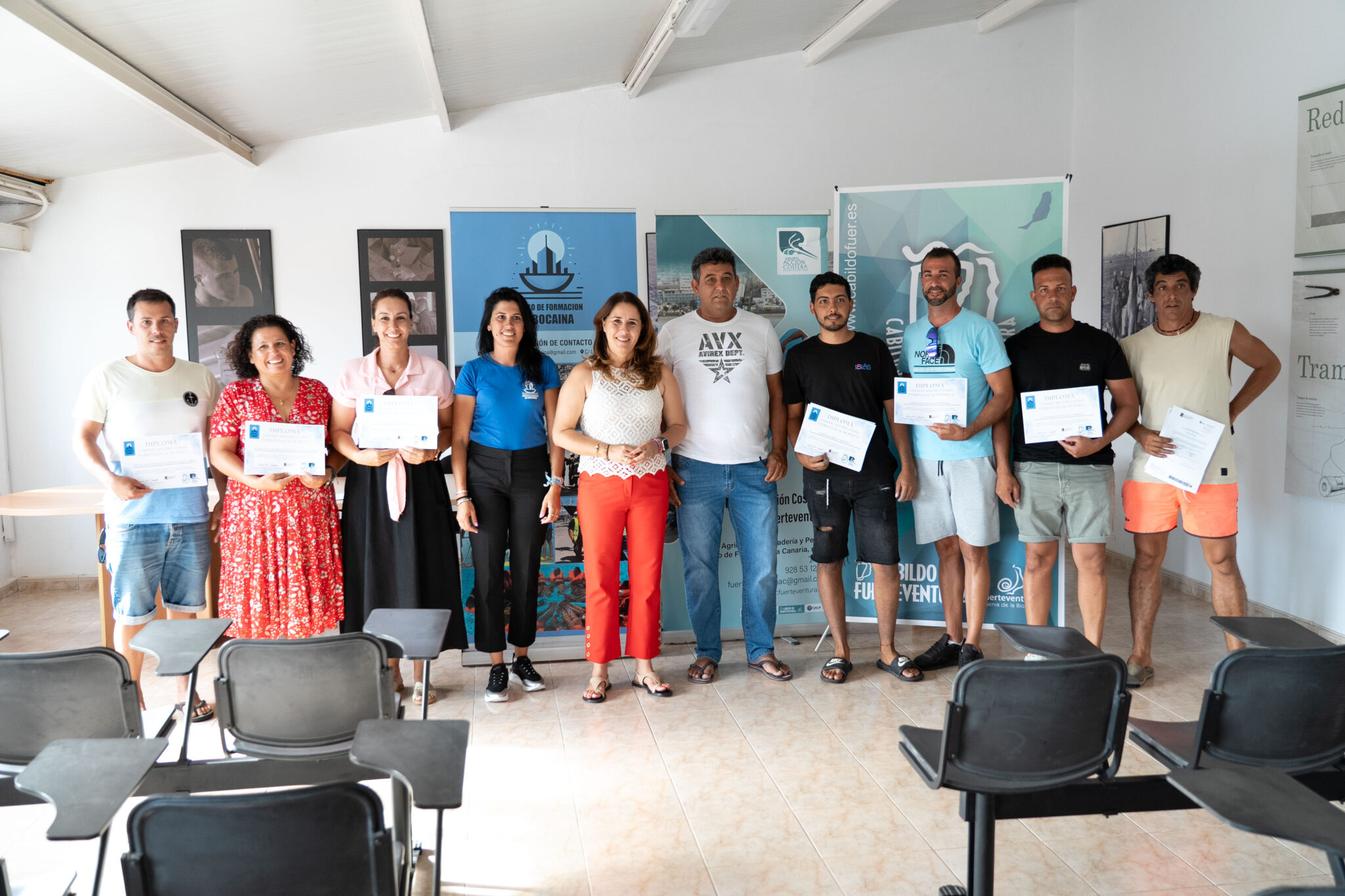 La presidenta insular, Lola García, hizo entrega de los diplomas en el día de ayer, felicitando a los y las participantes de un curso que les permite introducirse en el sector pesquero que forma parte de nuestra economía e identidad local. Se atiende, además, una de las demandas históricas de formación en la Isla que venían haciendo las diferentes cofradías, porque las personas que han realizado la formación han evitado el desplazamiento a Lanzarote para la obtención del título.