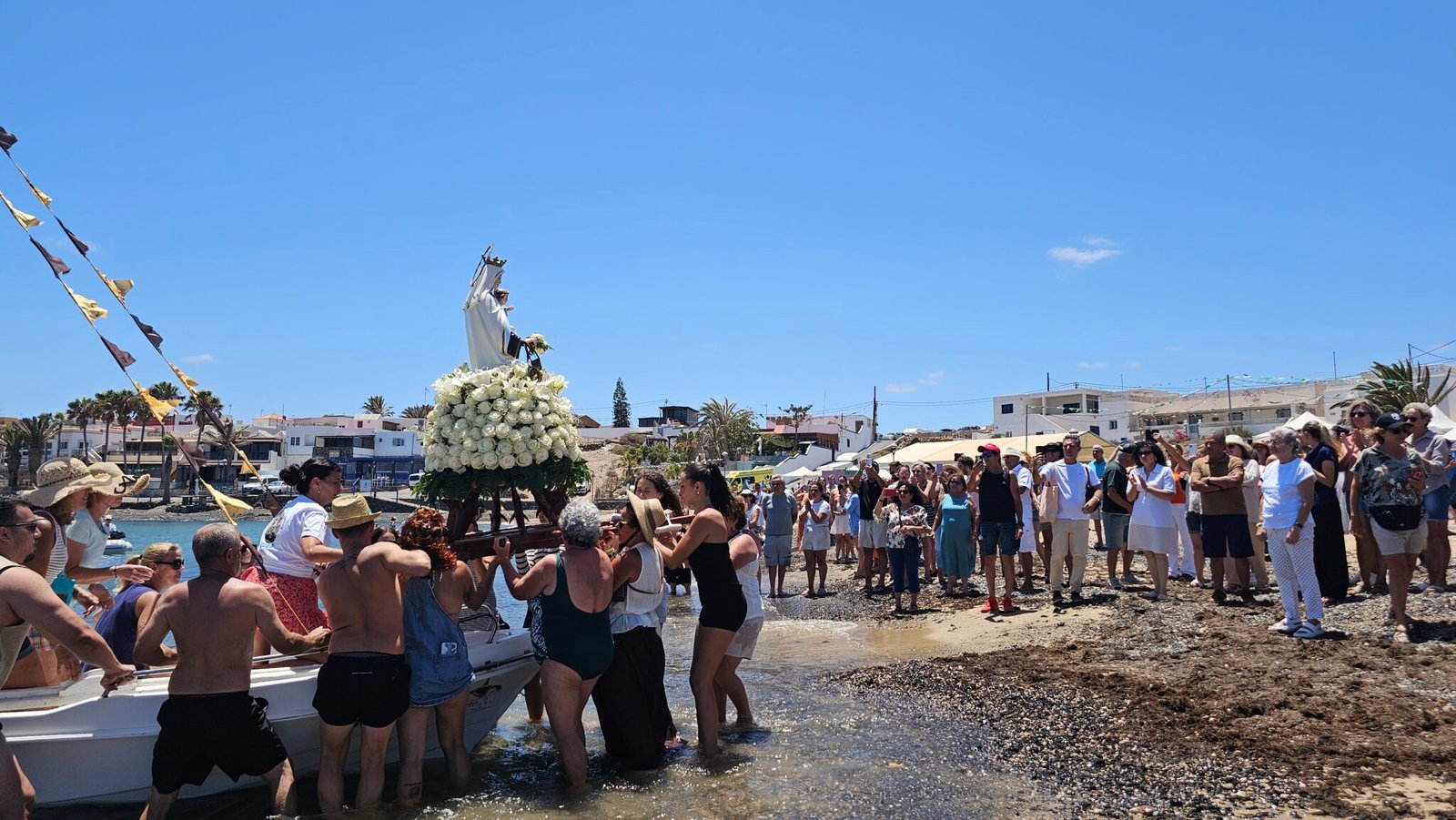 Una concurrida Procesión en Honor a Nuestra Señora del Carmen celebrada este domingo al mediodía en Las Salinas y en marea llena, cerrando así unas fiestas que han destacado por una alta participación vecinal, numerosa asistencia en sus bailes y verbenas con un ambiente familiar, seguro y responsable.