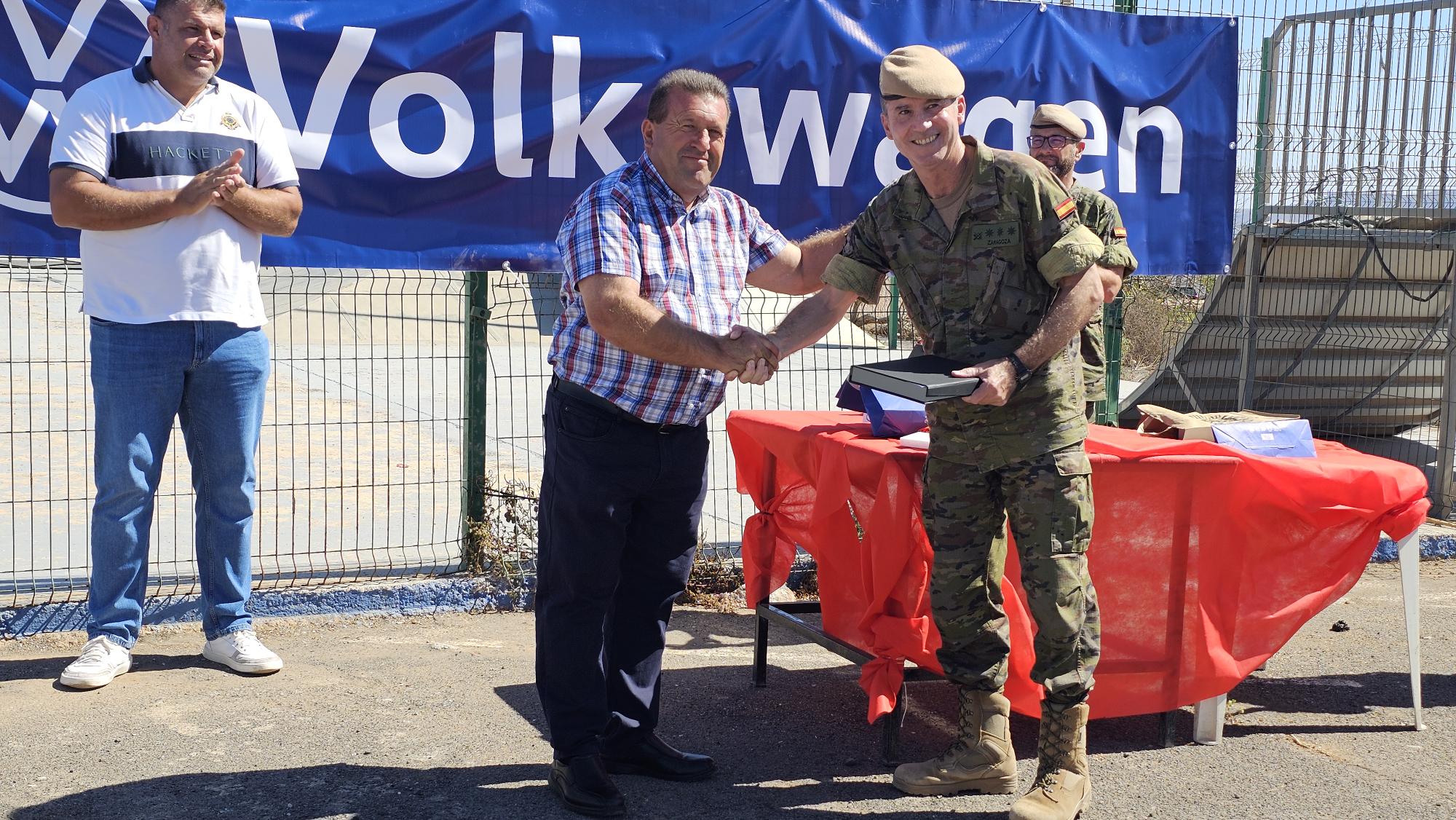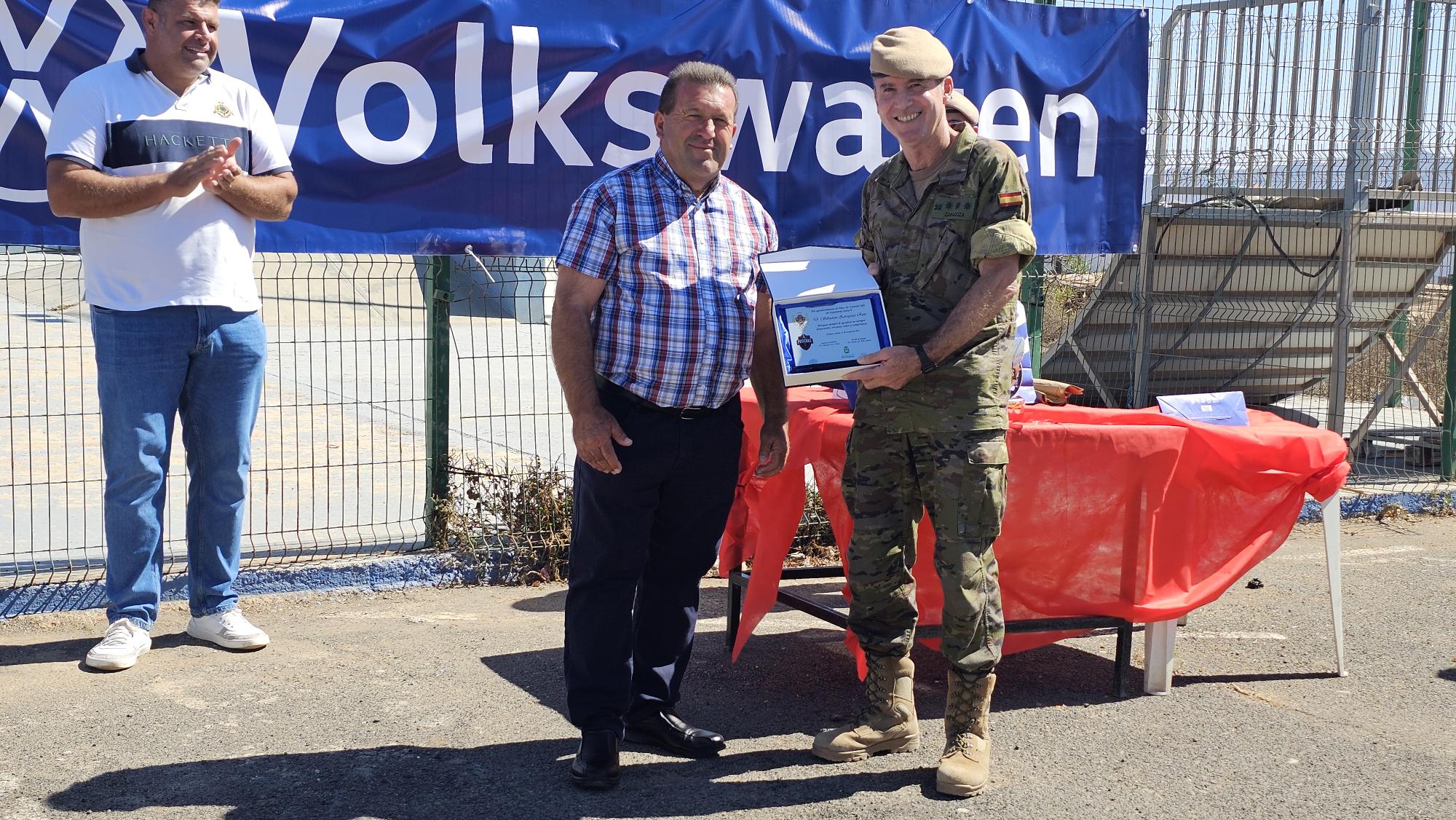 El alcalde de Antigua, Matías Peña, junto al concejal de Deportes, Samuel Torres, participaron en la entrega de premios junto al coronel jefe de Infantería Soria 9, Sebastián Zaragoza. Durante el acto, se realizó un emotivo intercambio de placas como reconocimiento al trabajo conjunto y la excelente coordinación entre el Ayuntamiento de Antigua y la organización de FUDENAS, que cada año garantiza el éxito del evento en su paso por el municipio.