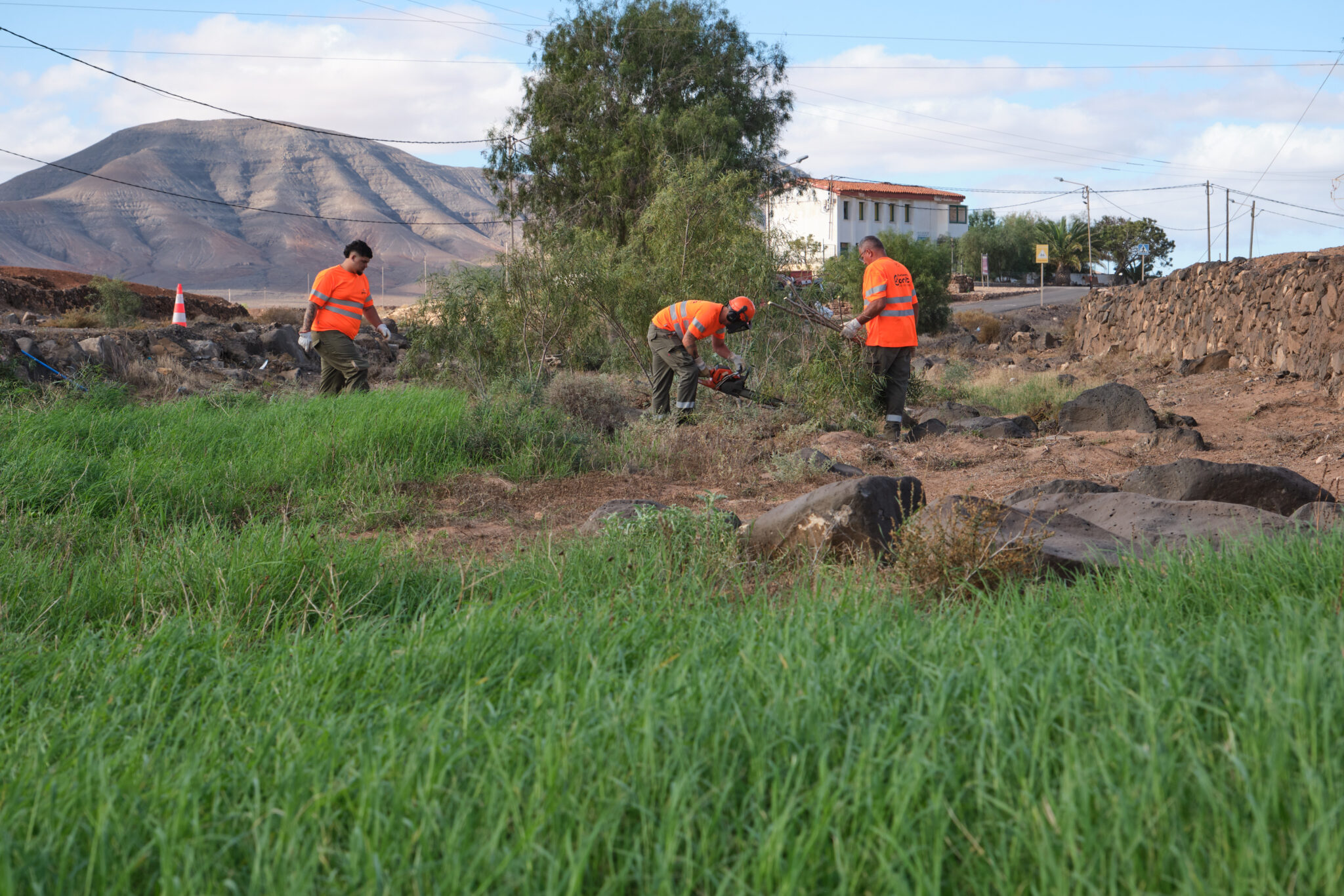 El Cabildo de Fuerteventura está ejecutando actuaciones de limpieza, poda y desbroce en el entorno de la localidad de Tesjuate (Puerto del Rosario), concretamente en la zona del Barranco de Río Cabras, con el objetivo de recuperar y mantener este espacio en las mejores condiciones.