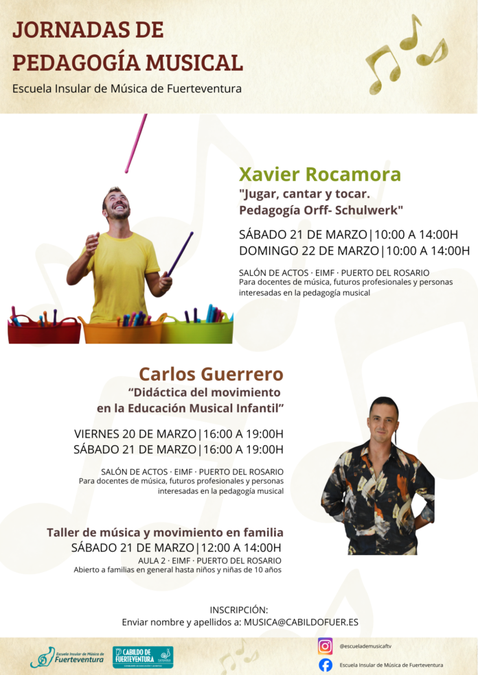 Las actividades se desarrollarán en el salón de actos de la Escuela Insular de Música, en Puerto del Rosario, y contarán con la participación de especialistas en pedagogía musical que impartirán talleres prácticos y sesiones formativas centradas en metodologías innovadoras aplicadas a la educación musical.
