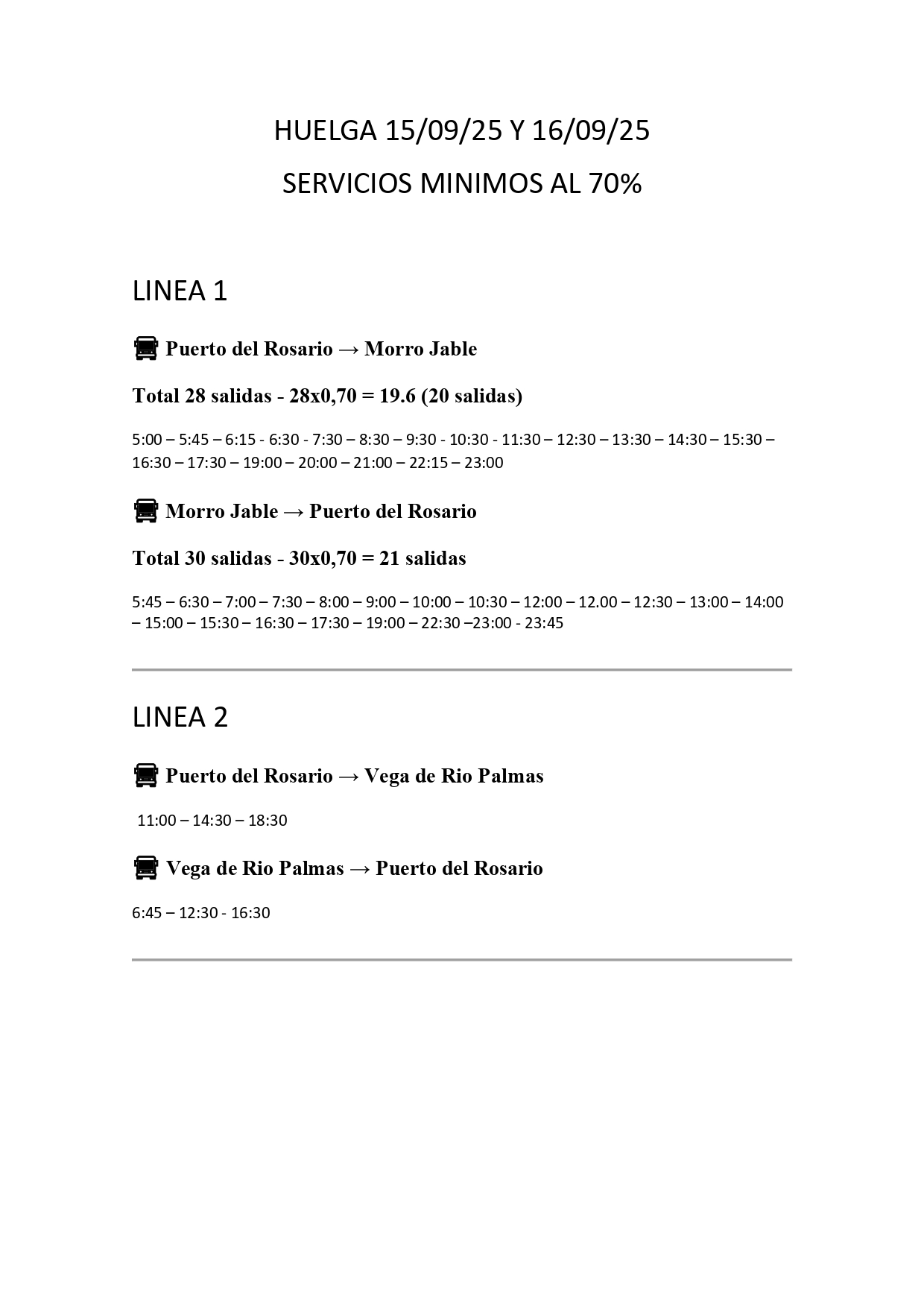 El Cabildo de Fuerteventura, a través de la Consejería de Transportes, comunica que, ante la huelga general de conductores de la empresa ALSA, concesionaria del servicio de transporte regular interurbano, se garantizarán los servicios mínimos.