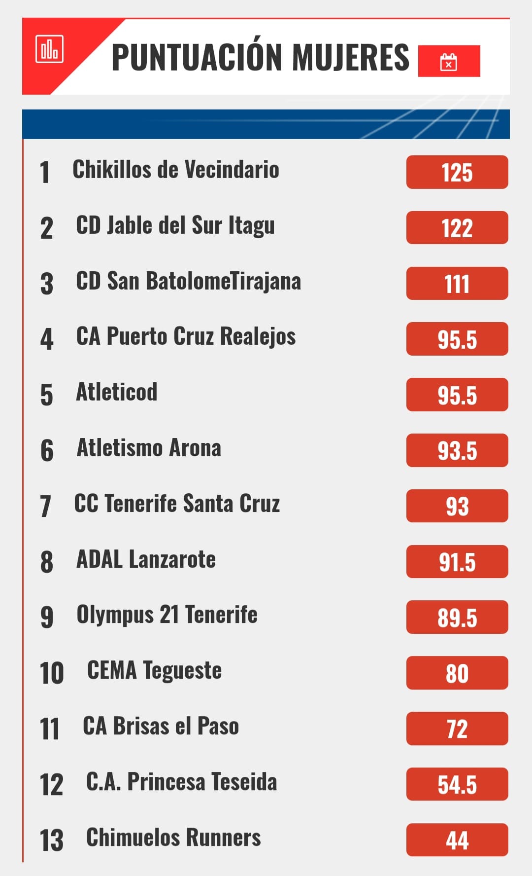 Por su parte, el equipo femenino no se quedó atrás y también protagonizó una excelente jornada, finalizando en segunda posición, a tan solo tres puntos del conjunto líder, «Chikillos de Vecindario». La igualdad en la clasificación deja abiertas todas las posibilidades para una jornada final que promete ser intensa y muy disputada.