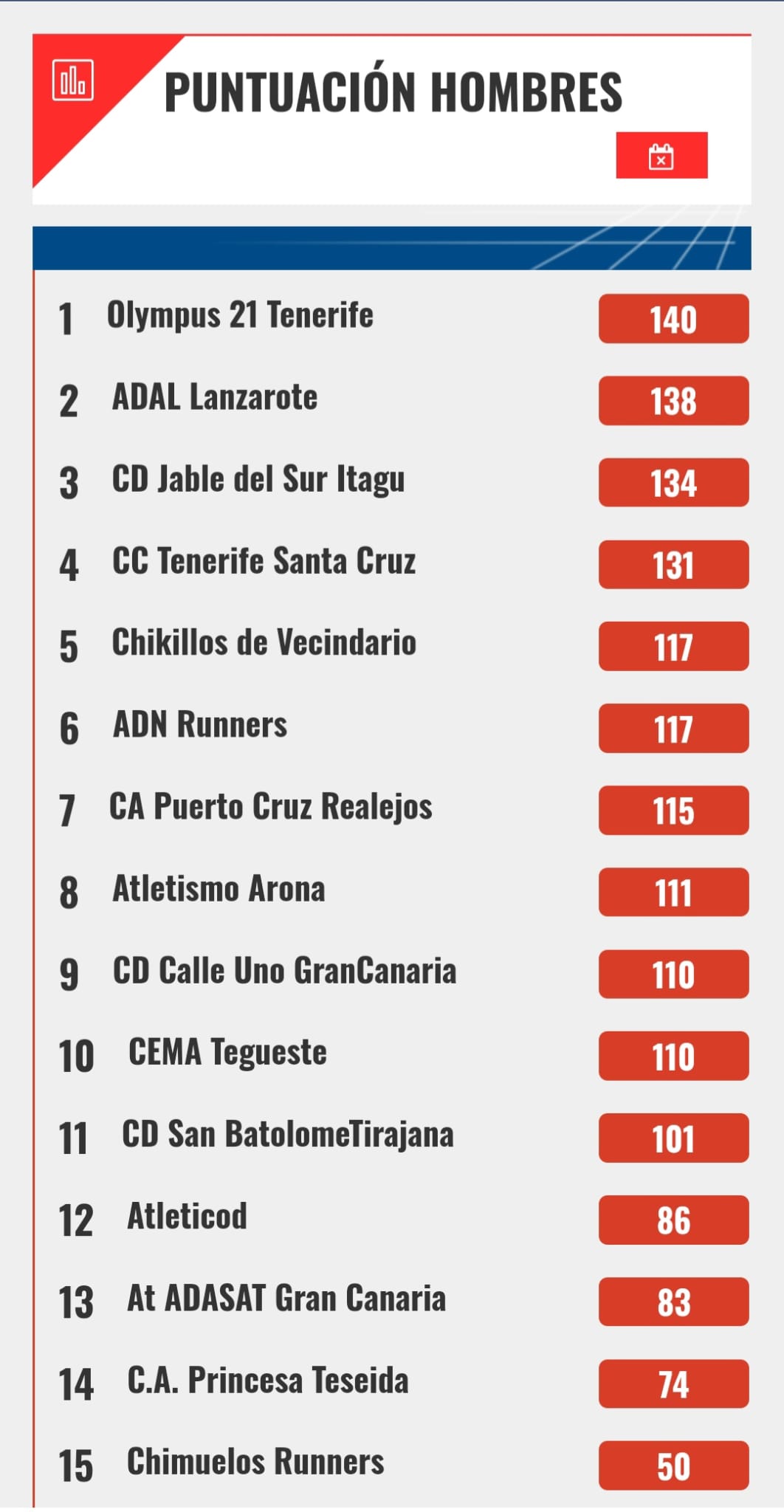 El club Jable del Sur Itagu firmó una destacada actuación en la primera jornada de la Liga Canaria de Clubes de 2.ª Categoría Masculina, situándose en la tercera posición de la clasificación general. Con tan solo seis puntos de diferencia respecto al líder, «Olympus 21 Tenerife», el equipo mantiene vivas sus aspiraciones de cara a la jornada definitiva.