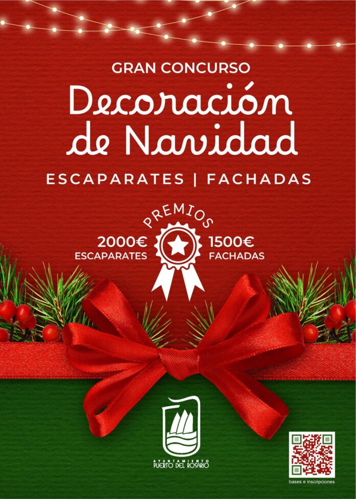 Eel ayuntamiento de Puerto del Rosario, a través de la concejalía de Comercio, organiza el gran concurso de decoración de Navidad. Con la intención de fomentar el ambiente navideño, se lleva a cabo esta iniciativa que incluye 3.500 € en premios: 2.000 € para el apartado de escaparates y 1.500 para fachadas.