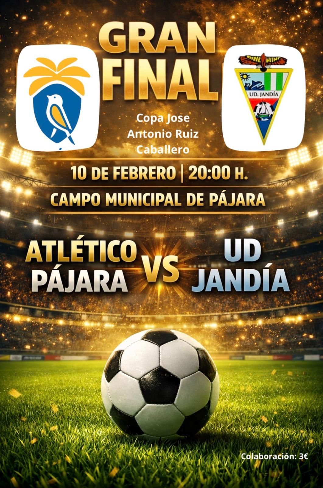 El próximo martes 10 de febrero a las 20:00 horas, el Campo Municipal de Pájara acogerá la esperada Gran Final de la Copa José Antonio Ruiz Caballero, un duelo cargado de emoción entre dos grandes del fútbol sureño: Atlético Pájara y UD Jandía.