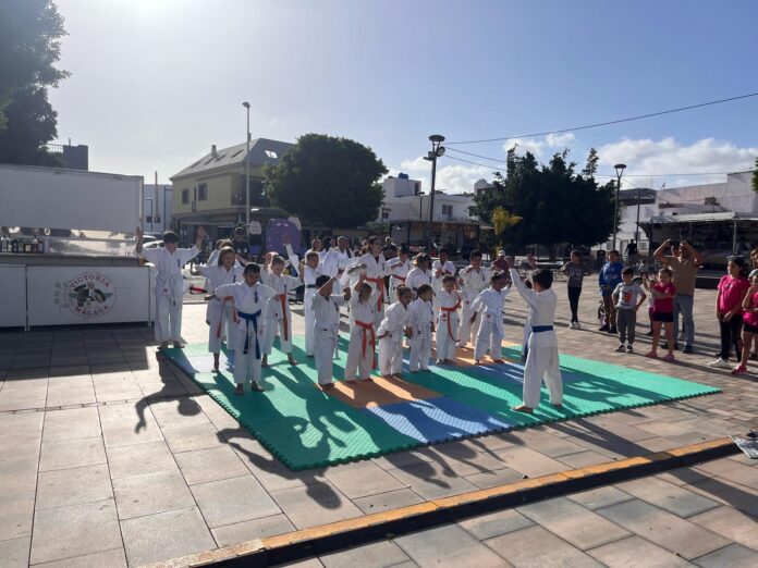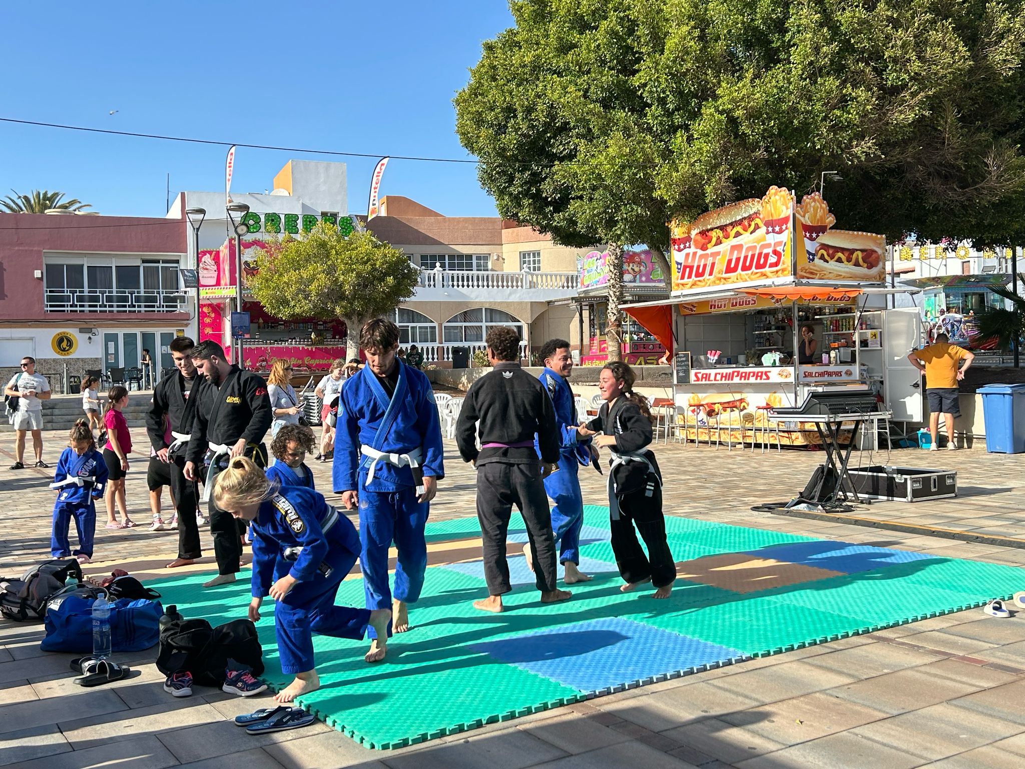 La jornada comenzó con una vibrante exhibición de karate a cargo de la escuela CAM El Jable, donde niños y niñas demostraron su destreza, disciplina y pasión por este arte marcial. También se sumó a la programación la escuela local de Jiu Jitsu, ofreciendo una demostración cargada de técnica y compañerismo, que captó la atención del público asistente.