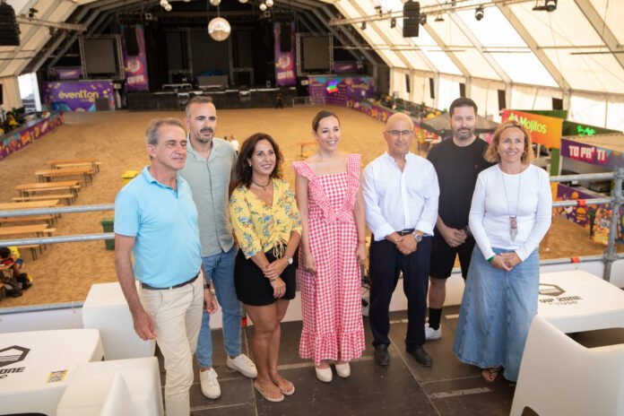 La consejera de Turismo y Empleo del Gobierno de Canarias, Jéssica de León; el director general de Ordenación, Formación y Promoción Turística, Miguel Ángel Rodríguez; y el director general de Infraestructura, Sostenibilidad y Calidad Turística, Héctor Mateo, han visitado este lunes La Carpa de Fuerteventura, el festival de música patrocinado por Turismo de Islas Canarias que se llevará a cabo en la Playa de Sotavento hasta el próximo 3 de agosto, y que celebra este año su edición más sostenible.