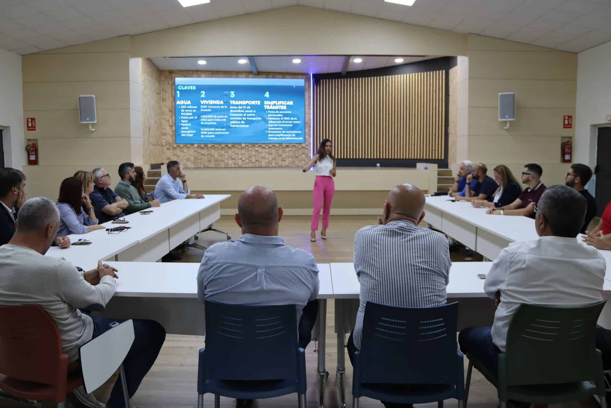 Para acometer el primero de los ejes, la candidata popular planteó soluciones a los grandes problemas del agua, la vivienda, el transporte o la simplificación de trámites administrativos. Un gran Pacto por el Agua, para “quitar la crispación de la ecuación y buscar soluciones entre todos, Cabildo y ayuntamientos”, además de reducir la enorme pérdida de agua (calculada en torno al 28% del agua que el CAAF produce en la isla) ejecutando de forma inmediata un plan de detección de fuga o cumplir con el cronograma del PICABAS, para el que hay previsto una inversión total de 220 millones de euros, son algunas de los compromisos para poner freno a los problemas en la producción y suministro de agua que padece actualmente Fuerteventura. En vivienda, el objetivo es doble: crear en 2023 el Consorcio de la Vivienda y dotarlo con una inyección económica de 17 millones de euros hasta 2027 para ejecutar iniciativas como la adquisición de suelo para vivienda pública o facilitar los créditos blandos a aquellos jóvenes que quieran adquirir o construir su primera vivienda, entre otras medidas.