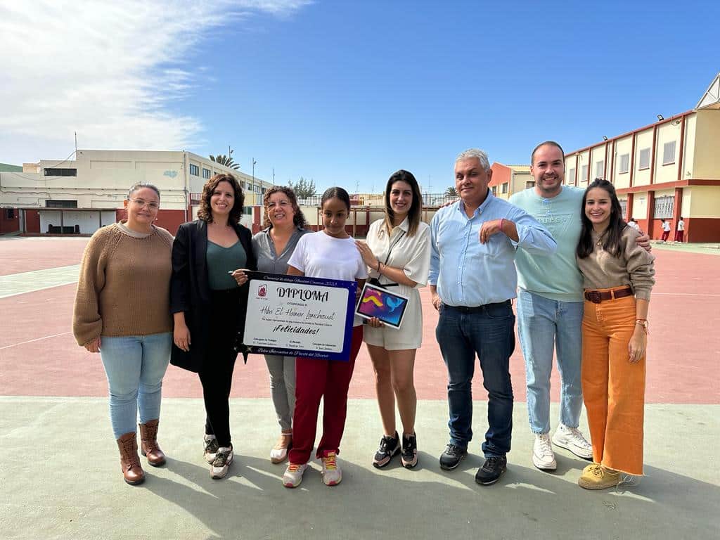 En el acto, al que acudieron la concejala de Festejos, Tacoremi Gutiérrez, así como los concejales de Educación y Desarrollo Local, Juan Jiménez y Erica González, que entregaron a Hiba una tablet, un diploma y le comunicaron junto al resto del alumnado de sexto, que su dibujo irá impreso en unas mochilas que se entregarán al alumnado de los CEIP de Puerto del Rosario durante sus visitas al Belén Gigante que abrió sus puertas al público este domingo.