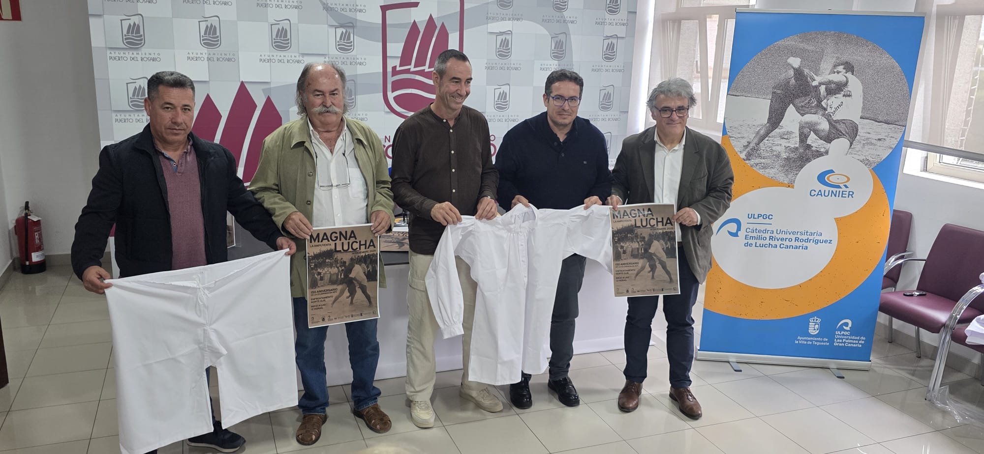 El Ayuntamiento de Puerto del Rosario, a través de su Concejalía de Pueblos, Barrios y Patrimonio Histórico, y la Cátedra Universitaria Emilio Rivero Rodríguez de Lucha Canaria de la ULPGC, presentaron este jueves, 04 de diciembre, a las 12:00 horas en las Salas Consistoriales, todos los detalles de “Magna Lucha. La Ampuyenta”, la recreación que conmemora el 150 aniversario de la legendaria luchada celebrada en ese pago en 1875.