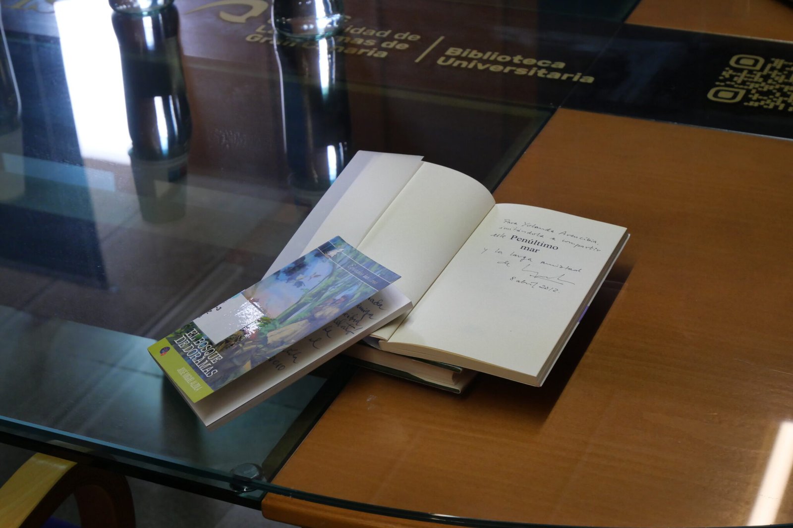 Unos 670 libros de los donados a la Biblioteca llevan la firma o dedicatoria de sus autores y autoras a Yolanda Arencibia, y una selección de las más relevantes se expuso en la sala Lothar Siemens de la Biblioteca durante la presentación del fondo.