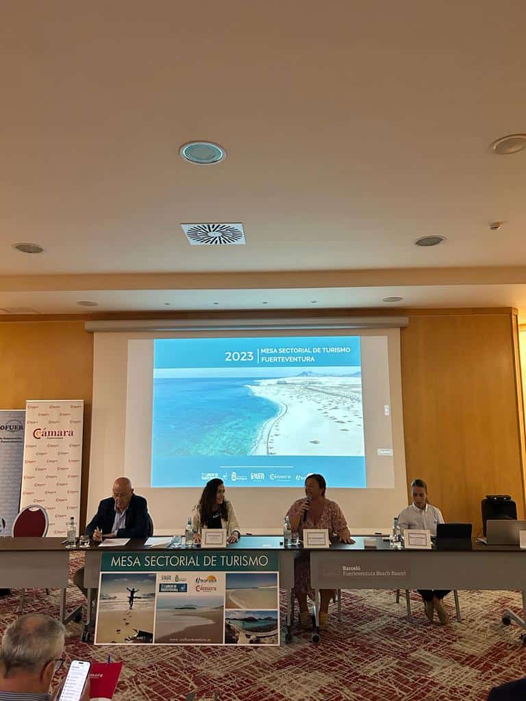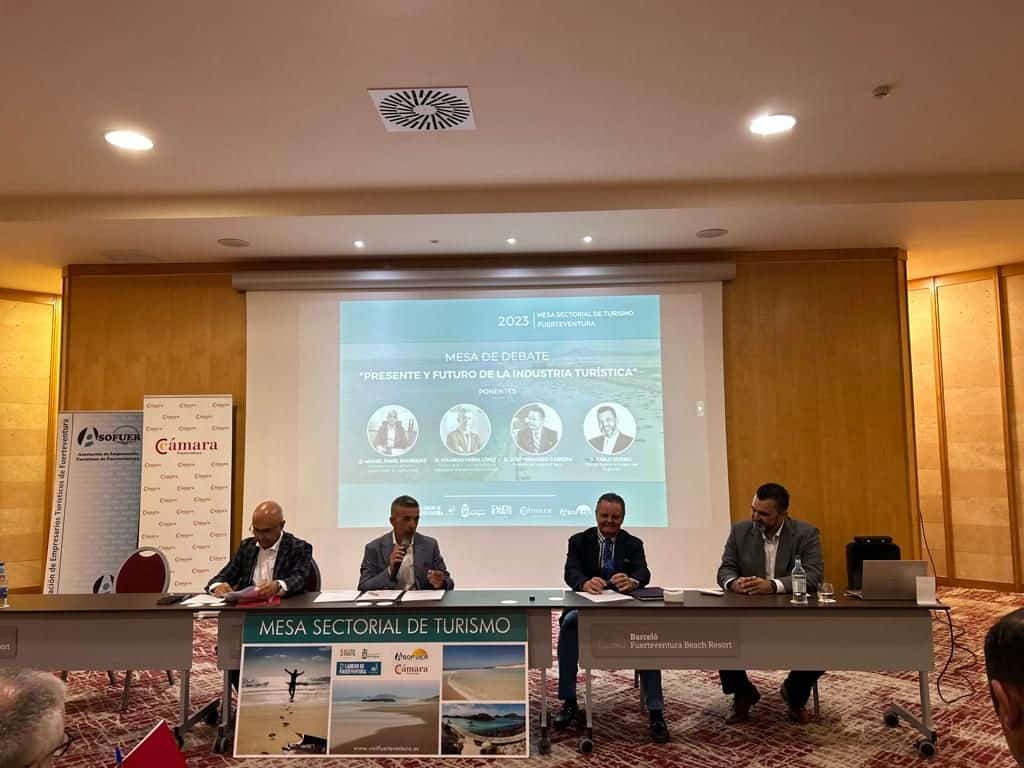 La Cámara de Comercio de Fuerteventura, junto con la Asociación de Empresarios Turísticos de Fuerteventura ha celebrado esta mañana la Mesa Sectorial del Turismo de Fuerteventura 2023. Han sido más de medio centenar de asistentes los que han querido presenciar la jornada, que ha constado de diferentes actividades enfocadas en el modelo turístico futuro para nuestra isla.