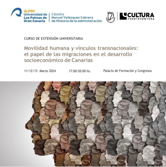 La Cátedra se inicia entre los días 11 y 13 de marzo con el curso de extensión universitaria “Movilidad humana y vínculos transnacionales: el papel de las migraciones en el desarrollo socioeconómico de Canarias”, impartido por los profesores de Geografía Humana de la ULPGC Ramón Díaz Hernández, Josefina Domínguez Mújica y Mercedes Rodríguez Rodríguez. El curso pretende ser un recorrido histórico por los procesos migratorios que han afectado a Canarias desde el siglo XV, al objeto de valorar el papel de las Islas como espacio de relación y nodo de contactos entre diferentes partes del mundo.