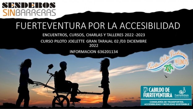 De este modo, ‘Fuerte Vida Parkinson No Limits’ organiza una actividad de formación para el manejo de las sillas joelëtte, en colaboración con ‘Senderos sin Barreras’. Se impartirá mañana, viernes, día 2 de diciembre, a las 17.00 horas, junto a la Escuela de Vela de Gran Tarajal.