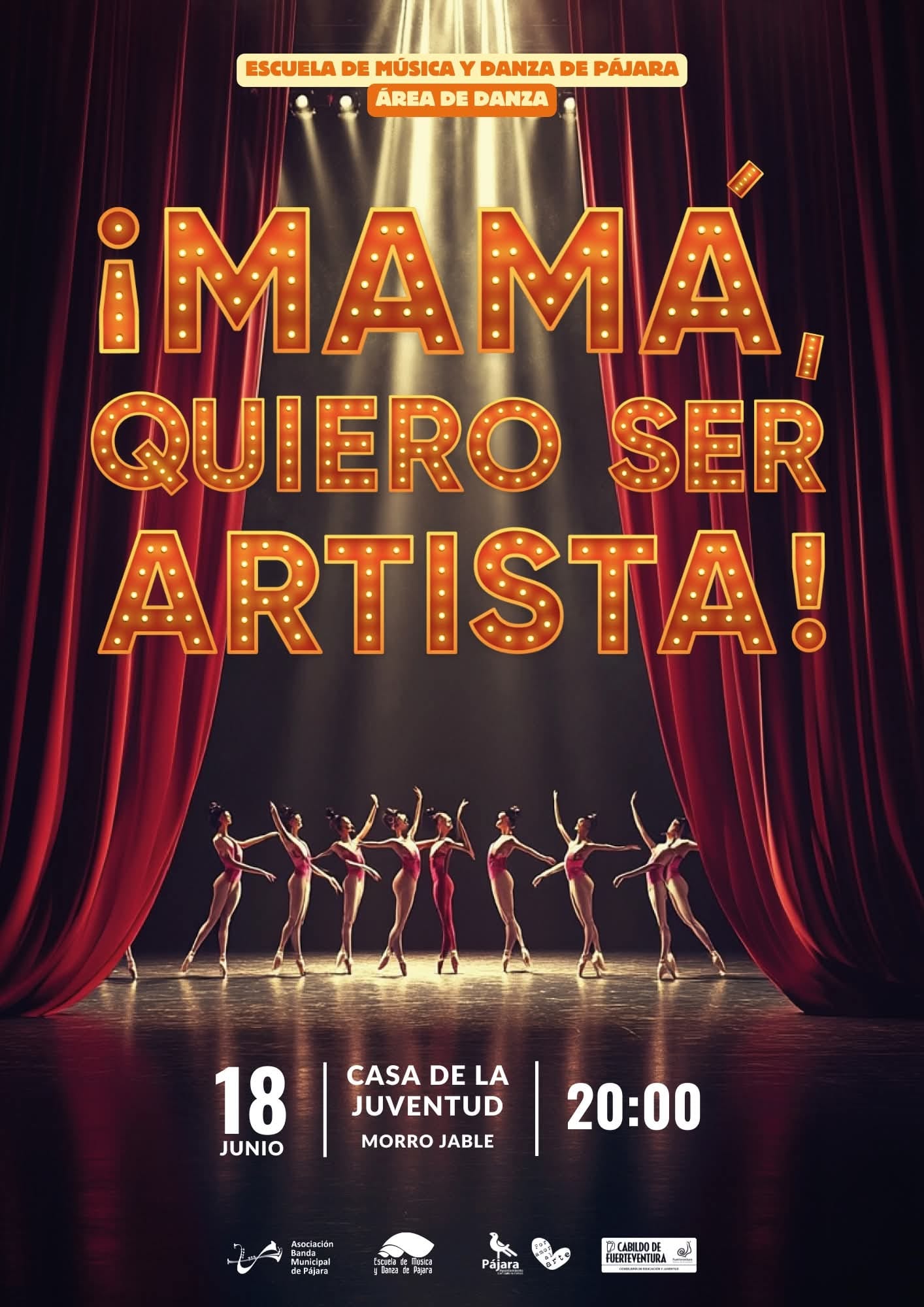 La Escuela de Música y Danza de Pájara se prepara para cerrar el curso con una vibrante muestra de talento y pasión: el espectáculo «Mamá, quiero ser artista», que tendrá lugar el próximo miércoles 18 de junio a las 20:00 horas en la Casa de la Juventud de Morro Jable.