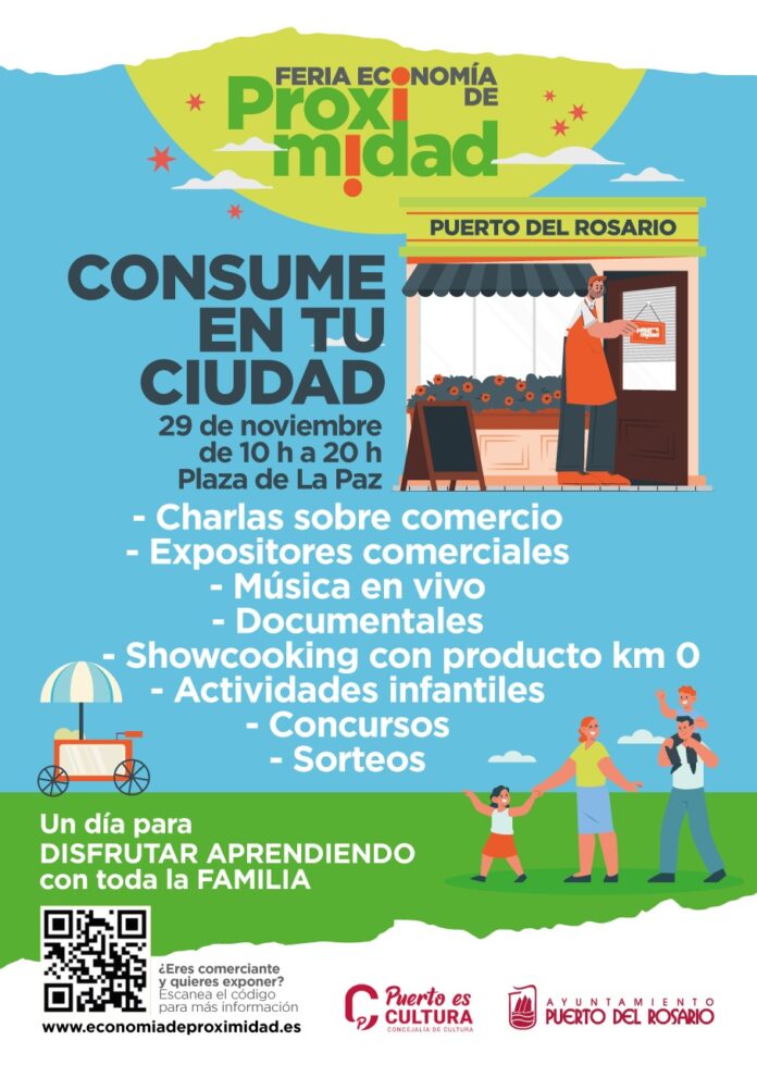 El Ayuntamiento de Puerto del Rosario presenta una nueva edición de la Feria de Proximidad “Consume en tu ciudad”, que tendrá lugar el sábado 29 de noviembre, en la Plaza de la Paz, de 10:00 a 20:00 horas.