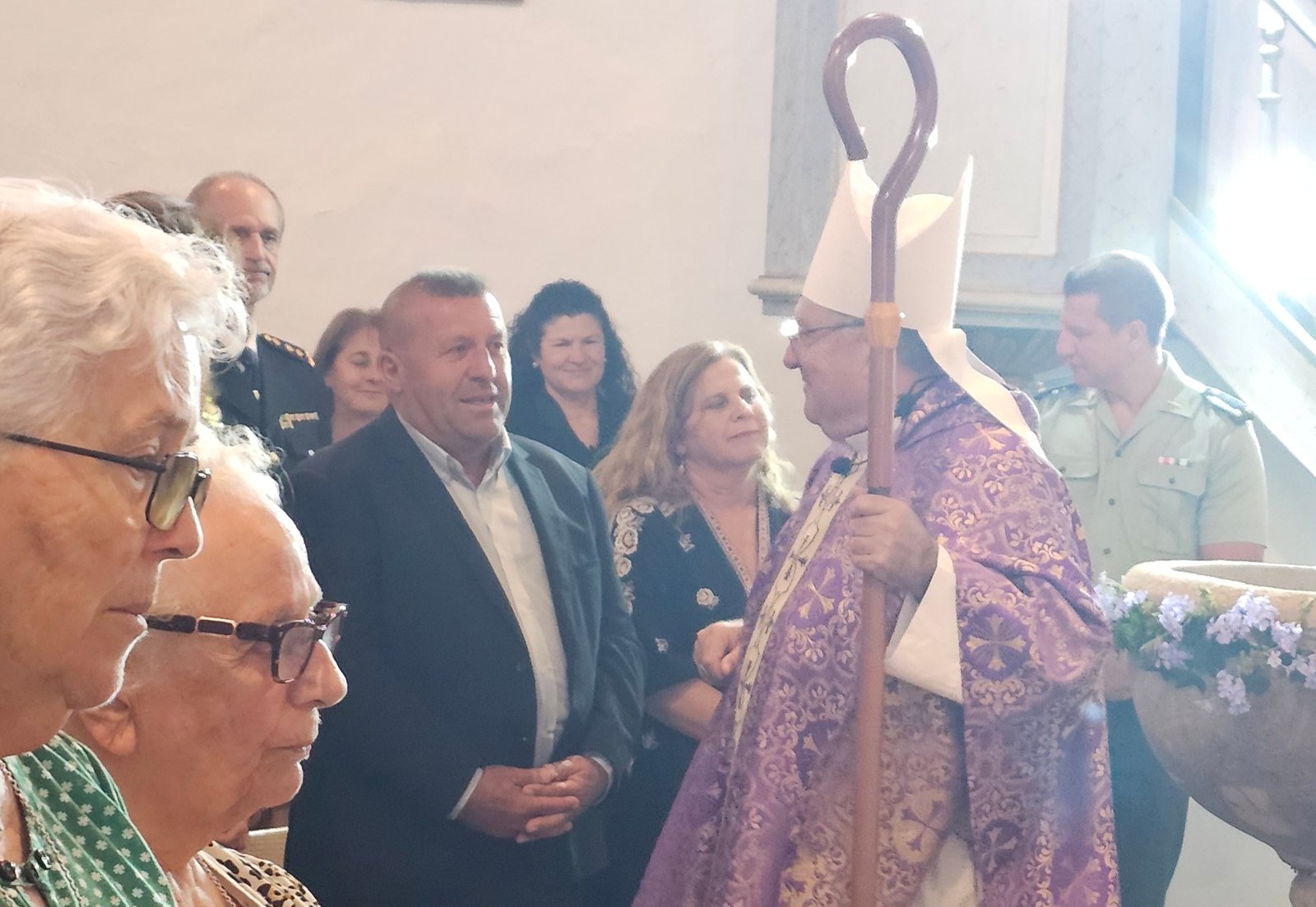 Solemnidad y silencio en una Iglesia que a los bancos habituales sumo las sillas necesarias para acomodar a todos y todas las asistentes a una Eucaristía sencilla y cercana que contó con la presencia de la presidenta del Cabildo de Fuerteventura, el alcalde anfitrión, Matías Peña, la Delegada del Gobierno, María Jesús De la Cruz, los alcaldes de Betancuria, Enrice Cerdeña, Puerto del Rosario, David De Vera, alcalde accidental de Pájara, Alexis Alonso, alcaldesa de Tuineje, Candelaria Umpierrez, entre otros representantes, concejales, consejeros y diputados, junto con los principales representantes de las Fuerzas de Seguridad en Fuerteventura.