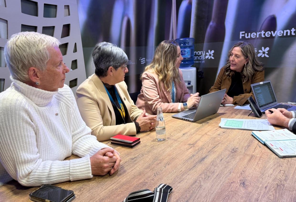 En esta segunda jornada de feria, a la que también asisten representantes de los tres principales municipios turísticos de la Isla cuyos concejales Tina Da Silva en representación de Pájara, Kristina Rodewig por Antigua y el David Fajardo y el alcalde de La Oliva, Isaí Blanco en nombre de La Oliva, acompañan en algunas de las reuniones a Marlene Figueroa y el equipo del Patronato de Turismo que representa al conjunto de la Isla.