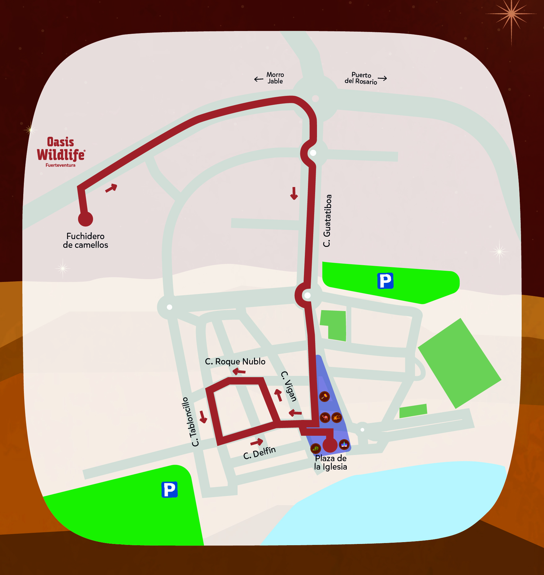 - Paseje Real (22:00 h): La esperada cabalgata parte desde Oasis Wildlife y recorre el pueblo hasta La Lajita con los Reyes Magos a lomos de camellos canarios, acompañados por burros majoreros y personajes del Belén viviente, encarnados por vecinos y vecinas.