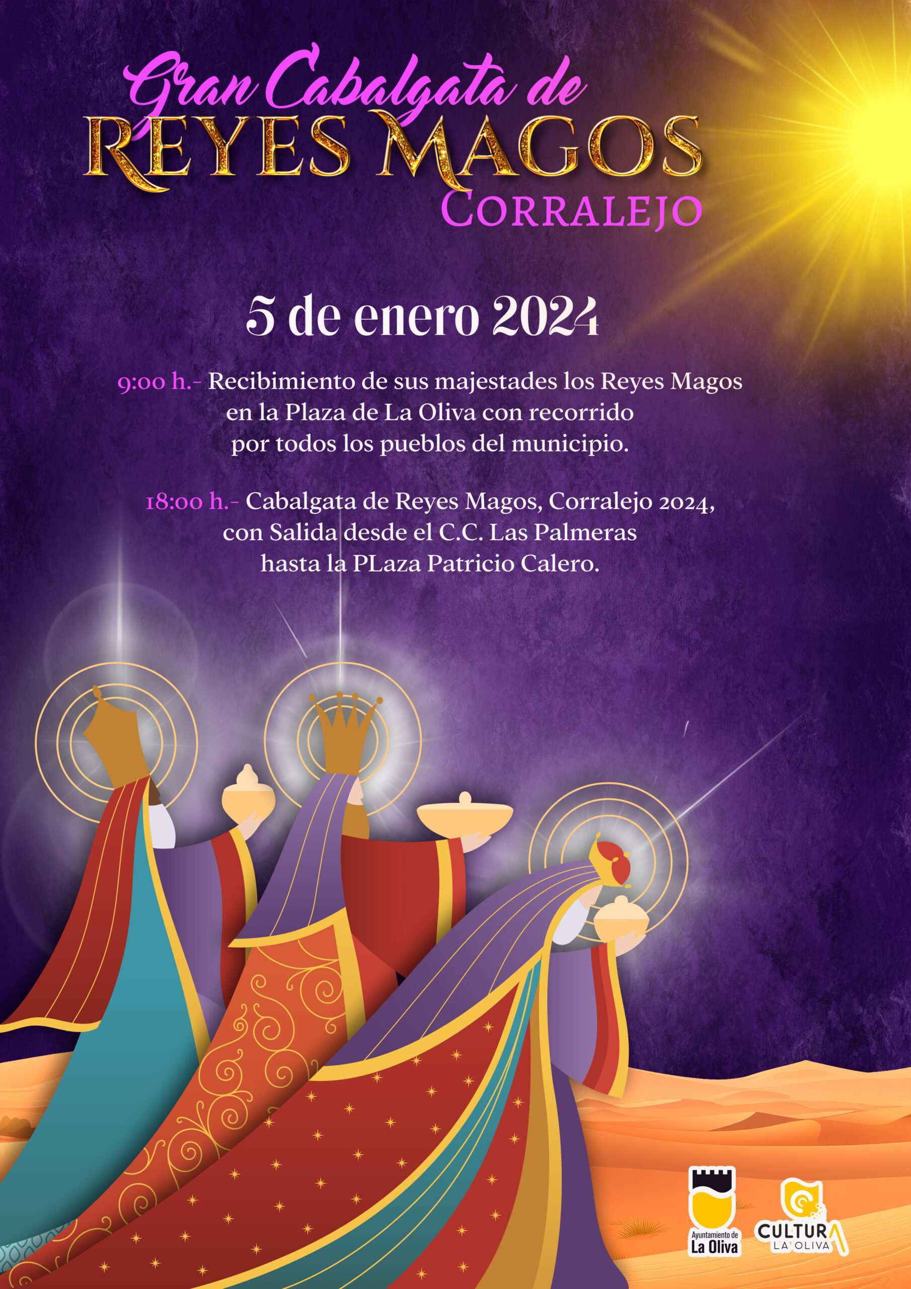 Desde tempranas horas de la mañana, el municipio se vestirá de colores y alegría para recibir a los Reyes Magos, quienes realizarán un recorrido por todos los pueblos de La Oliva. El itinerario comenzará a las 9:00 h desde la Plaza de La Oliva, abarcando Tindaya, Vallebrón, Caldereta, La Caleta, Parque Holandés, Villaverde, Lajares, Roque, Cotillo, Tamaragua, hasta llegar a Corralejo. El cierre del recorrido está previsto a las 14:30 h en la Biblioteca Municipal de Corralejo.