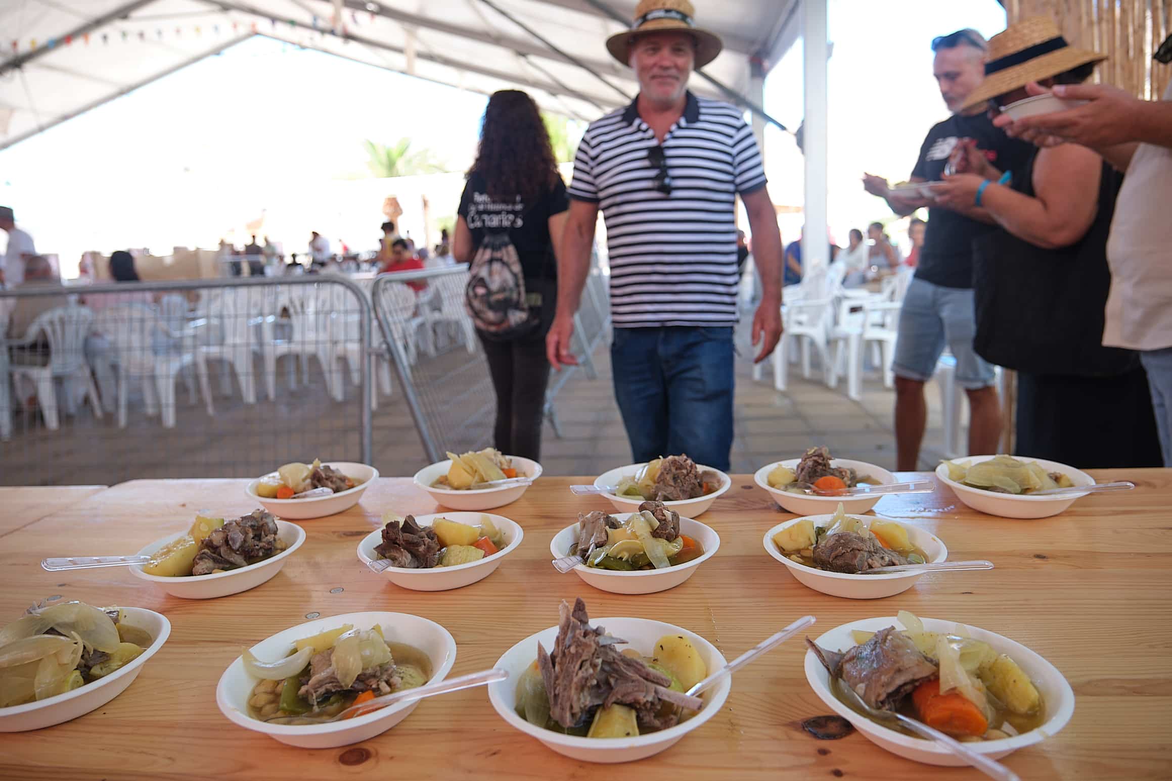 Tras el éxito de la primera edición, la plaza de Nuestra Señora de la Peña en la Vega de Río Palmas acogió este año su segunda degustación de puchero tradicional con música en directo. Las Fiestas de La Peña rinden homenaje así a uno de los elementos más representativos y que no pueden faltar en las fiestas populares de Fuerteventura. Una iniciativa que se consolida con un público que, desde el primer minuto, hizo cola este sábado para degustar este plato característico de la identidad majorera.