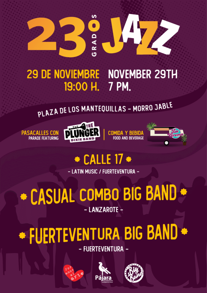 El Ayuntamiento de Pájara, a través de la Concejalía de Cultura, patrocina la primera edición del festival al aire libre 23 Grados Jazz, organizada por Fuerteventura Big Band. El encuentro se celebrará mañana sábado, a las 19:00 horas, en la plaza de Los Mantequillas,