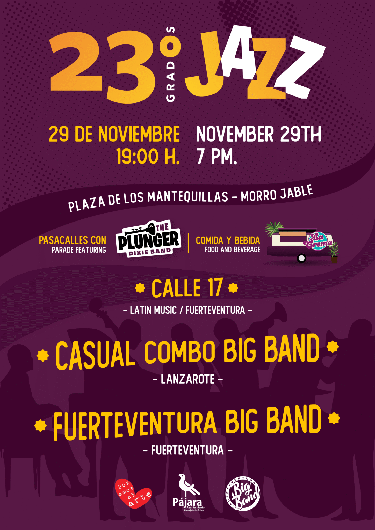 La jornada es gratuita y está dirigida a todos los públicos. En esta primera edición participarán tres formaciones: Calle 17, Banda majorera de ritmos cubanos y latinos, Casual Combo Big Band y la Fuerteventura Big Band, anfitriona del festiva