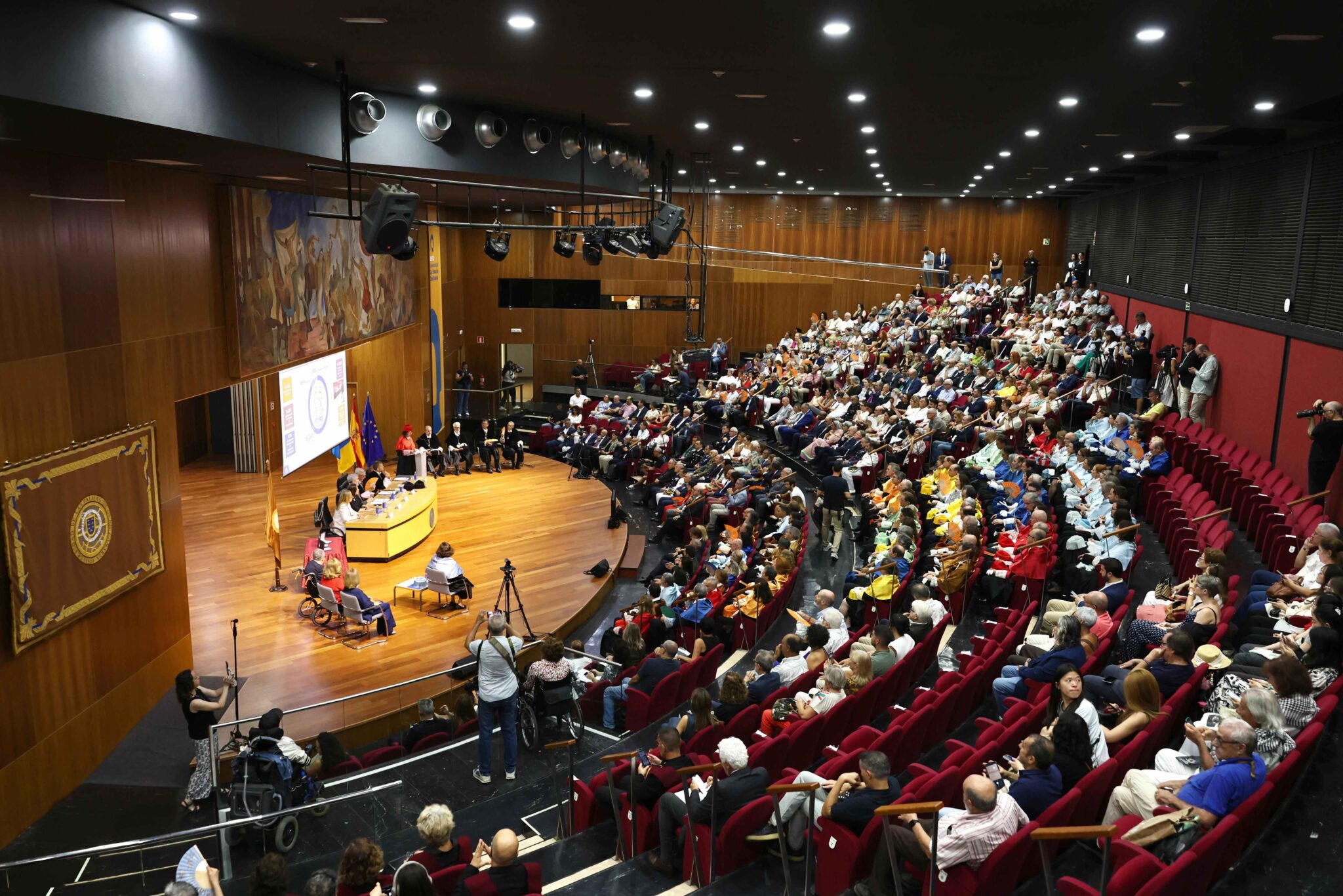 El Rector también hizo especial mención en su discurso a “la crueldad ejercida sobre la población civil de Gaza” en la actualidad. “Hemos asistido a imágenes insoportables de muerte, sufrimiento y violaciones flagrantes de los derechos más básicos. Una violencia que desde la ULPGC nos negamos a normalizar. Condenamos sin matices la brutal agresión de Hamás, repudiando sin tapujos y con firmeza el desproporcionado, injusto y cruel exterminio y genocidio”. Por este motivo, el Rector pidió a los asistentes al acto un minuto de silencio en medio de su discurso y posteriormente anunció su intención de proponer al Claustro de la ULPGC el nombramiento como Doctora Honoris Causa, a título póstumo, de Fátima Hassouna, joven fotoperiodista de Gaza asesinada a los 25 años junto a toda su familia.