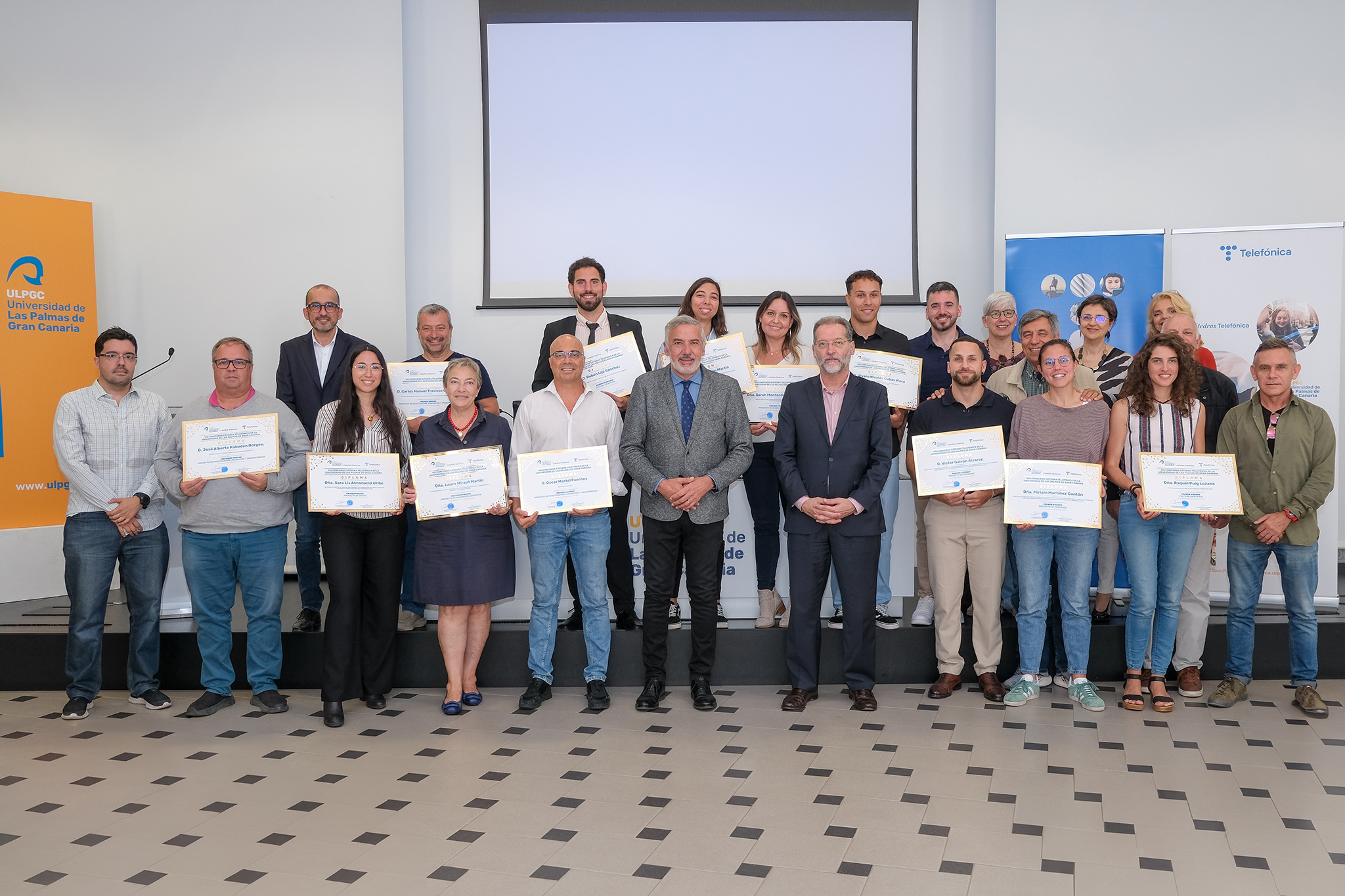 Cada primer premio cuenta con una dotación de 1.000 euros, mientras que los segundos premios reciben 500 euros. Al acto asistieron el Rector de la ULPGC, Lluís Serra; el Vicerrector de Estudiantes, David Sánchez; y el director territorial de Telefónica en Canarias, Juan José Flores.