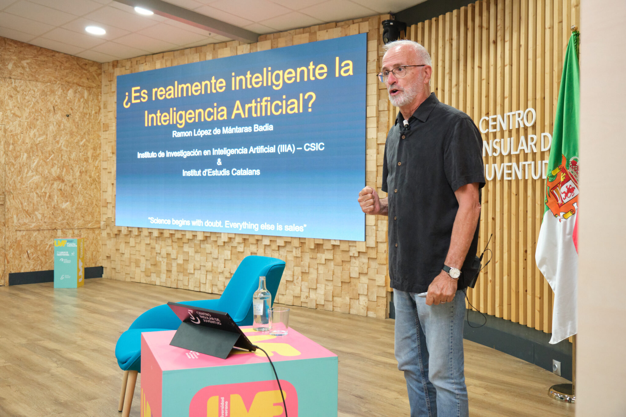 Tras la apertura oficial, se celebró la primera ponencia a cargo del profesor Ramón López de Mántaras, investigador del CSIC y director del Instituto de Investigación en Inteligencia Artificial. Con una trayectoria de más de 300 publicaciones científicas y galardonado con numerosos premios internacionales, López de Mántaras ofreció una charla titulada “Reflexiones sobre la inteligencia de la Inteligencia Artificial”. En su intervención, el profesor presentó una visión crítica sobre los límites actuales de la IA, diferenciando entre la capacidad operativa de los sistemas artificiales y la comprensión profunda que caracteriza la inteligencia humana. La Universidad de Verano de Fuerteventura, que se celebra del 24 al 27 de junio, se consolida como un foro de encuentro para la reflexión, el aprendizaje y el debate en torno a los grandes desafíos del presente, ofreciendo a la ciudadanía un espacio de conocimiento abierto y participativo. Se celebra con la colaboración de la Agencia Canaria de Investigación, Innovación y Sociedad de la Información del Gobierno de Canarias, Televisión Canaria, Fundación DISA y Fundación MAPFRE Canarias.