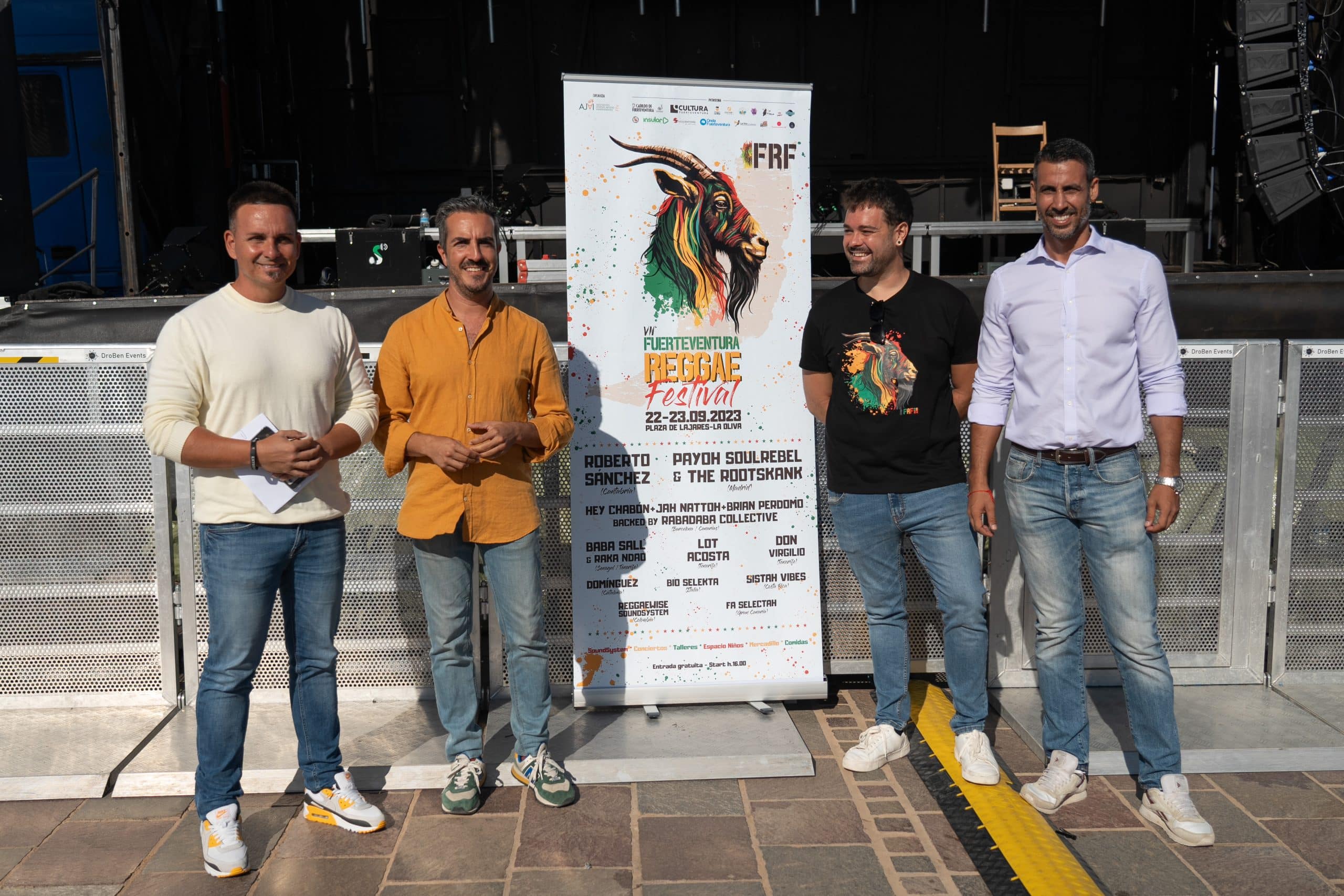 Acudieron a la presentación del evento musical el consejero de Cultura de la Corporación insular, Rayco León; el alcalde del Ayuntamiento de La Oliva, Isaí Blanco; el concejal de Obras y Servicios del Ayuntamiento de La Oliva, Luis Alba, y Alejandro Frey, promotor del festival.