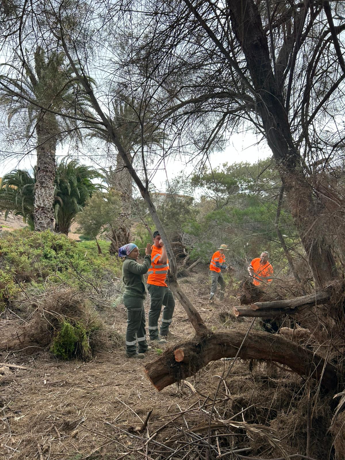 En este caso, las actuaciones en los barrancos de Betancuria cuentan con la colaboración del área de Medio Ambiente y el Consejo Insular de Aguas de Fuerteventura para la agilización de informes y supervisión de las labores. Se lleva a cabo la limpieza de desperdicios que son dañinos para el ecosistema, así como trabajos de poda para mejorar las condiciones de los barrancos, evitando factores de riesgo como inundaciones en épocas de lluvia.