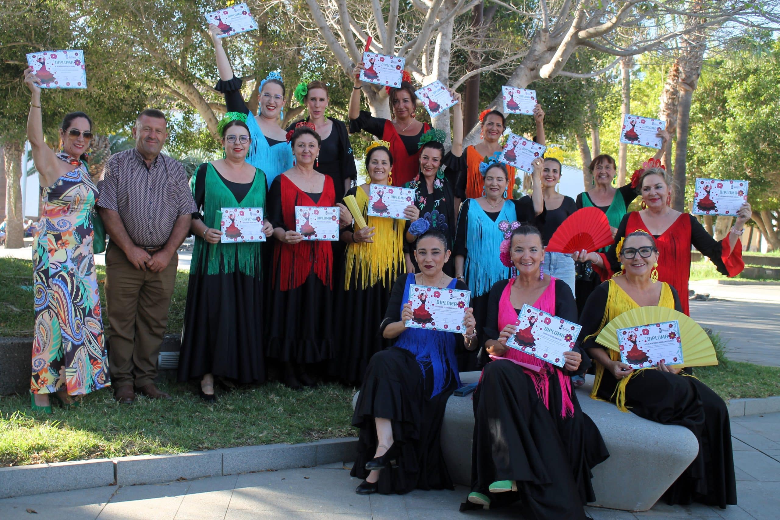 El Curso de Sevillanas ha sido impartido por María Lourdes De la Peña Esteban en Antigua y Caleta de Fuste con 35 mujeres inscritas, que han podido aprender y practicar sevillanas, rumba y flamenco fusión.