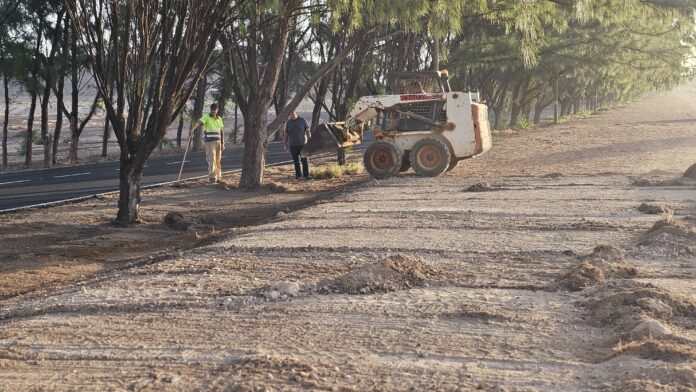 El Ayuntamiento de Antigua actúa estos días en la limpieza y embellecimiento de la entrada que da acceso a Costa de Antigua, un vial caracterizado por una arboleda de pinos, cuya pinacha requería ser retirada para limpiar y embellecer este vial tan característico y llamativo.