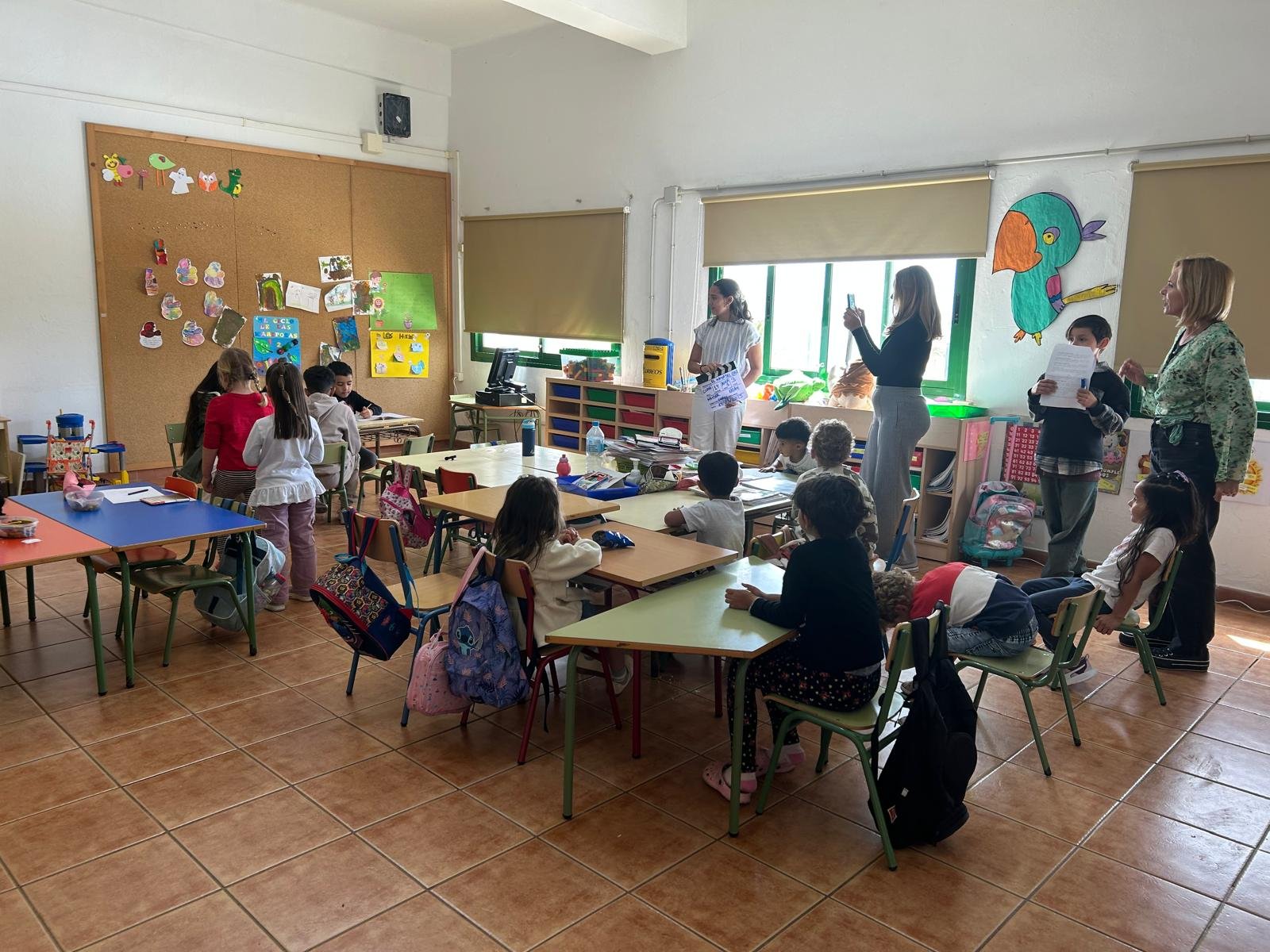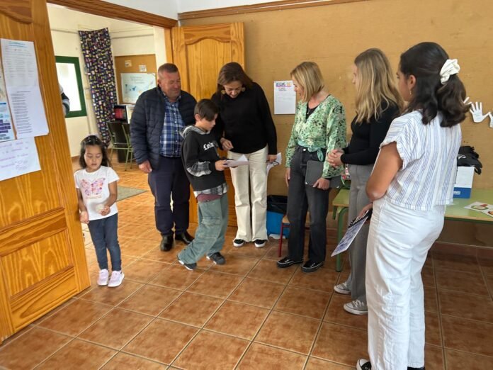 La consejera de Fuerteventura Film Commission, Nereida Calero, ha visitado ya las grabaciones en el CEIP Valles de Ortega, acompañada por el alcalde del municipio de Antigua, Matías Peña.