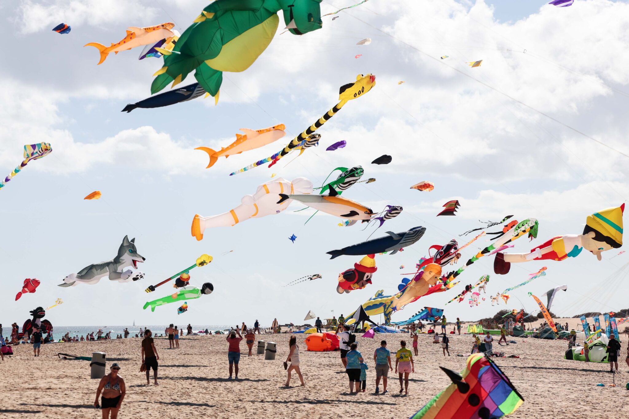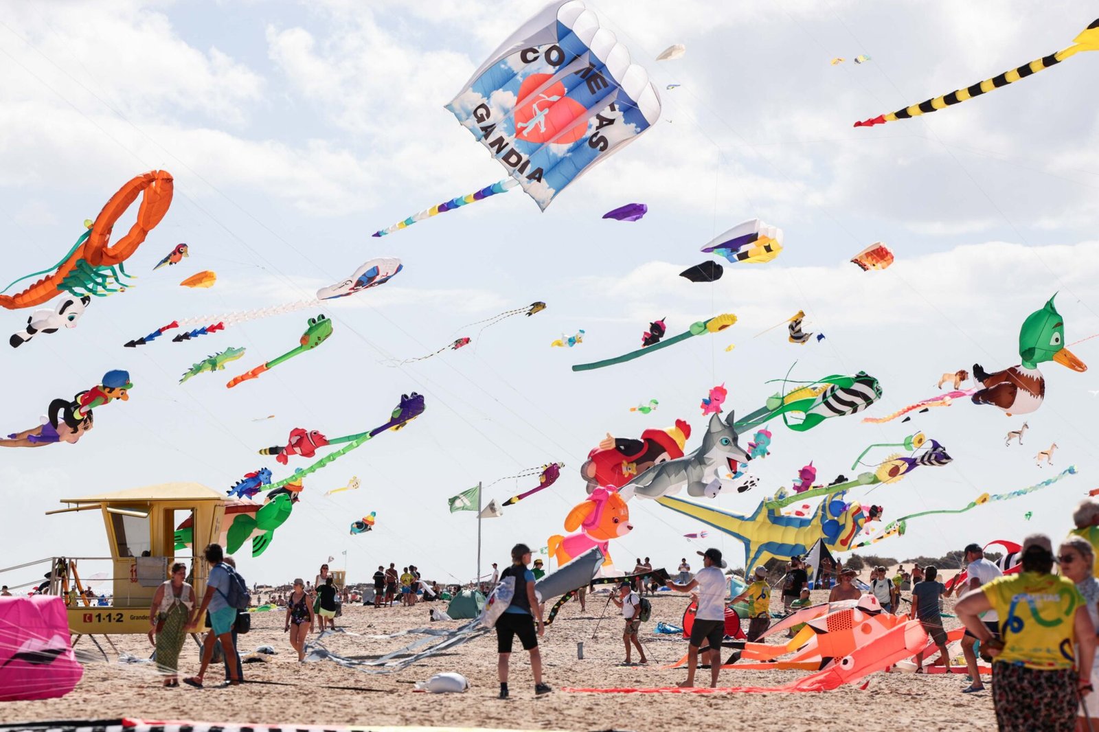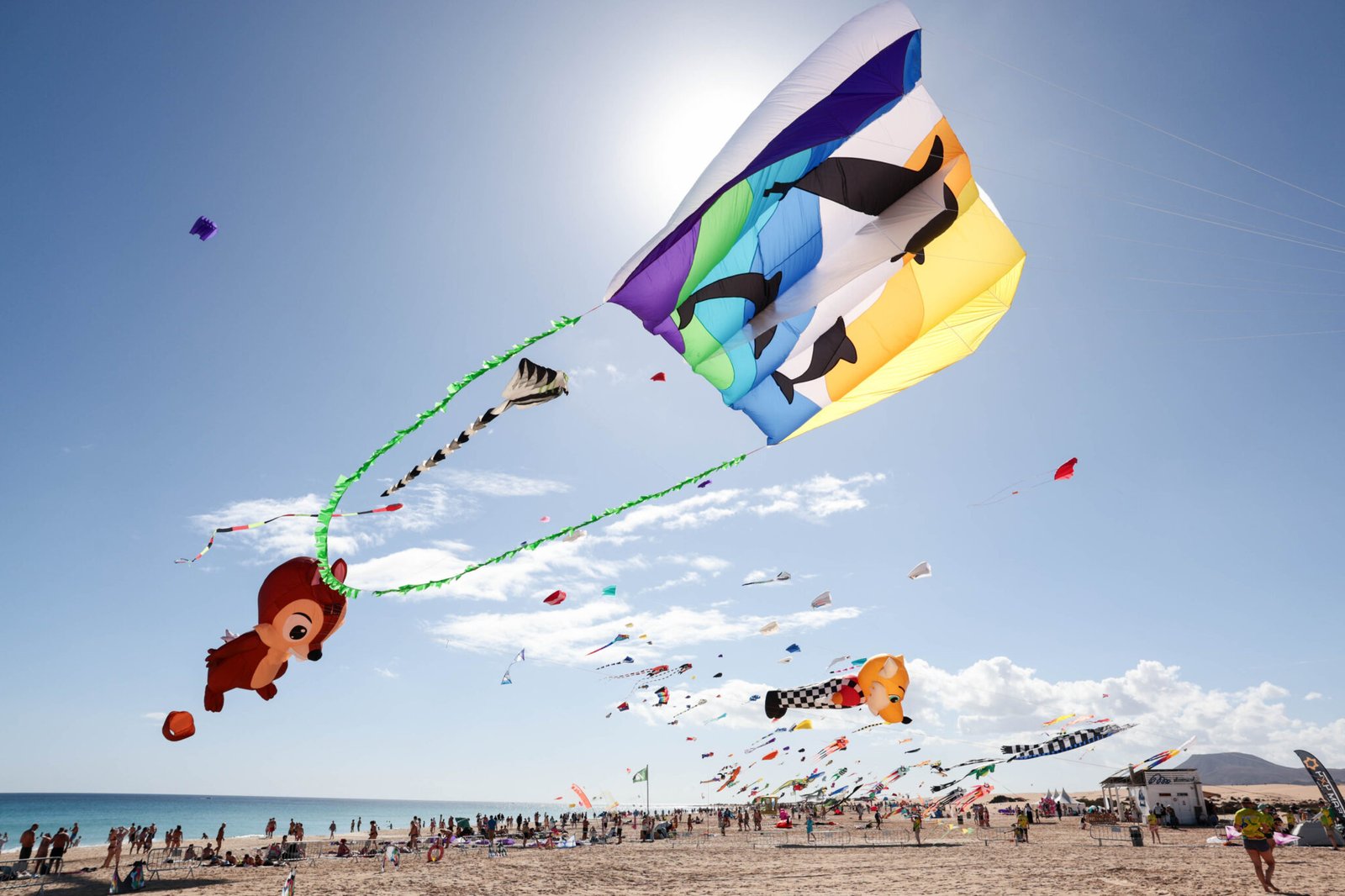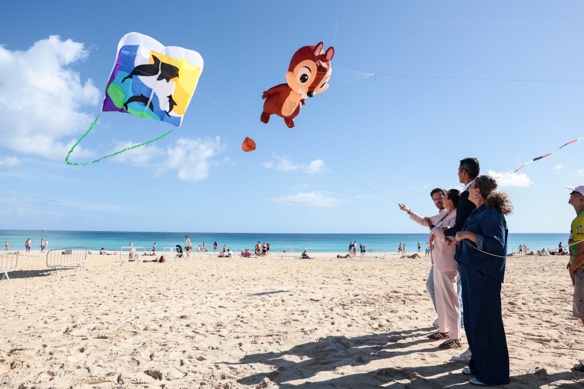 Ya es oficial, miles de cometas vuelan ya sobre el paraje natural de las Dunas de Corralejo. Hoy se ha celebrado el vuelo inaugural de la 38º edición del Festival Internacional de Cometas de Corralejo. Una ardilla de enormes dimensiones y una cometa de delfines poniendo en valor la sostenibilidad y el cuidado de los mares han dado el pistoletazo de salida a un evento que crece año tras año en colorido y participación.
