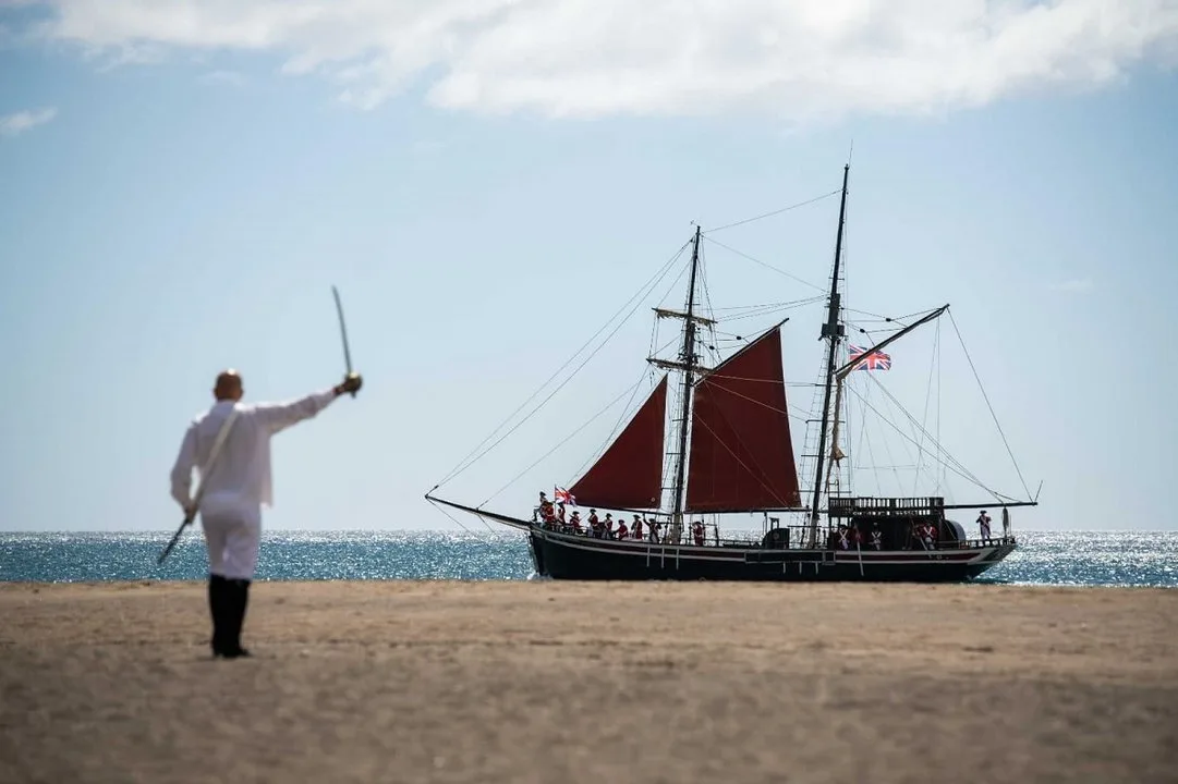 Tuineje celebra su día grande con el esperado desembarco en la playa de Gran Tarajal, donde hace 284 años arribaron los corsarios británicos. Lo que no sabían los invasores era que nunca iban a volver a casa dada la feroz resistencia que encontraron por parte del pueblo majorero. Este sábado 12 de septiembre, con una gran afluencia de público, el barco invasor volvió a acercarse a la costa y los ingleses pusieron de nuevo pie en la arena negra del pueblo costero.