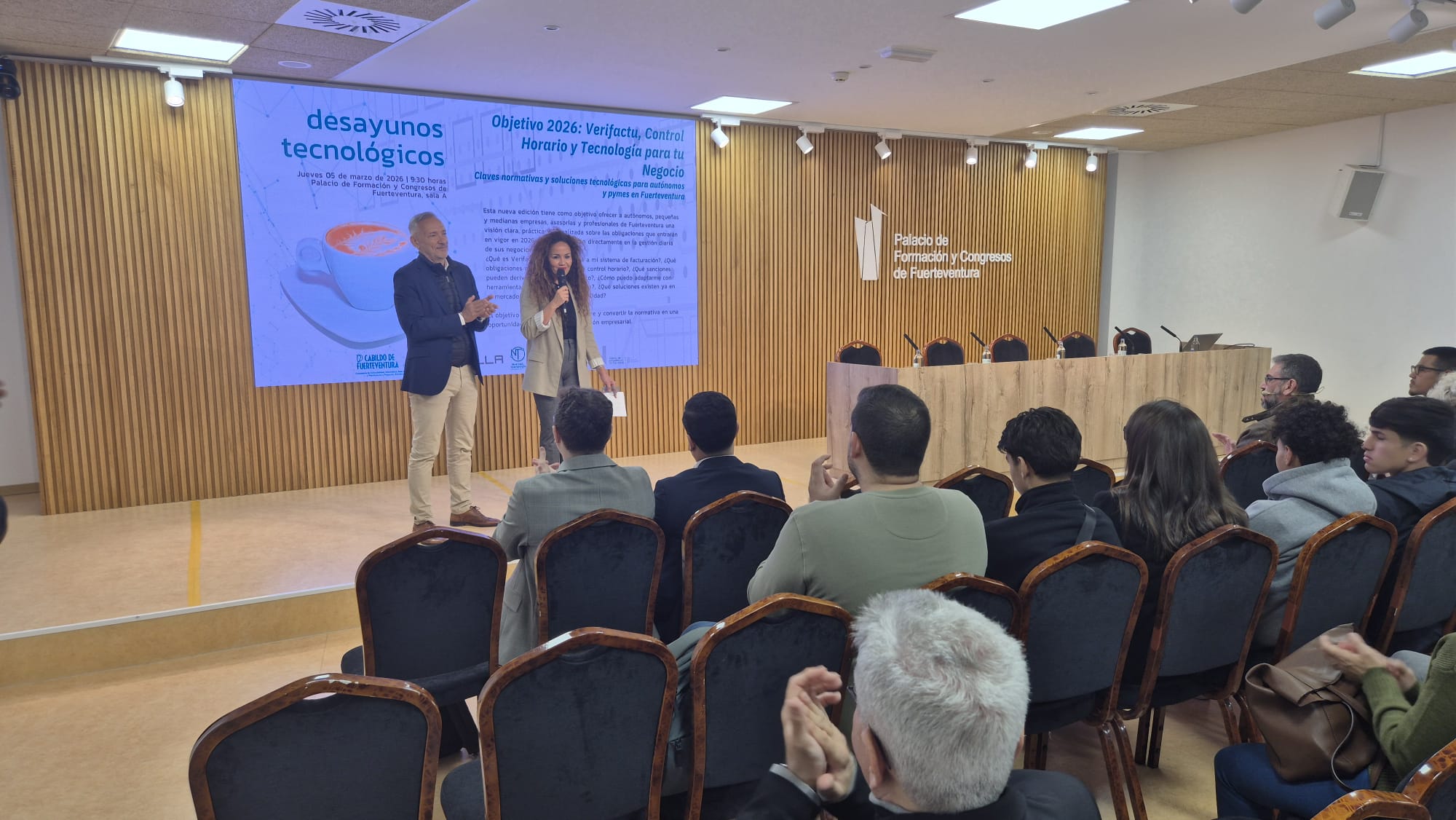Los Desayunos Tecnológicos del Cabildo de Fuerteventura han ofrecido soluciones a autónomos y pymes ante la nueva normativa de 2026 que afecta al tejido empresarial, especialmente en materia de facturación electrónica (Verafactu) y registro de jornada/control horario, entre otros aspectos.
