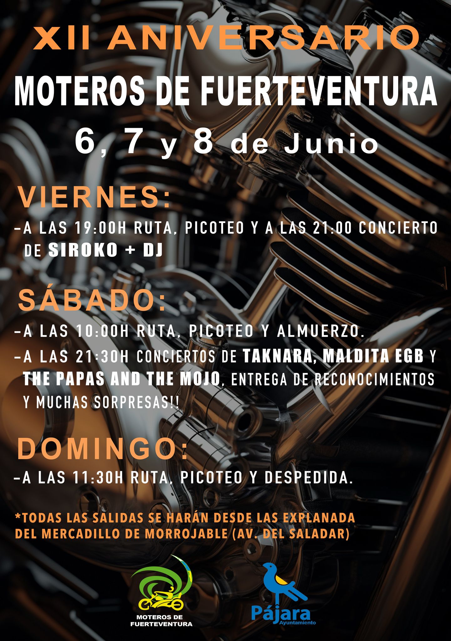 El rugir de los motores volverá a sentirse con fuerza en la isla del 6 al 8 de junio con motivo del XII Aniversario del club Moteros de Fuerteventura, una cita ya consolidada que promete reunir a amantes del motor de toda Canarias y más allá.